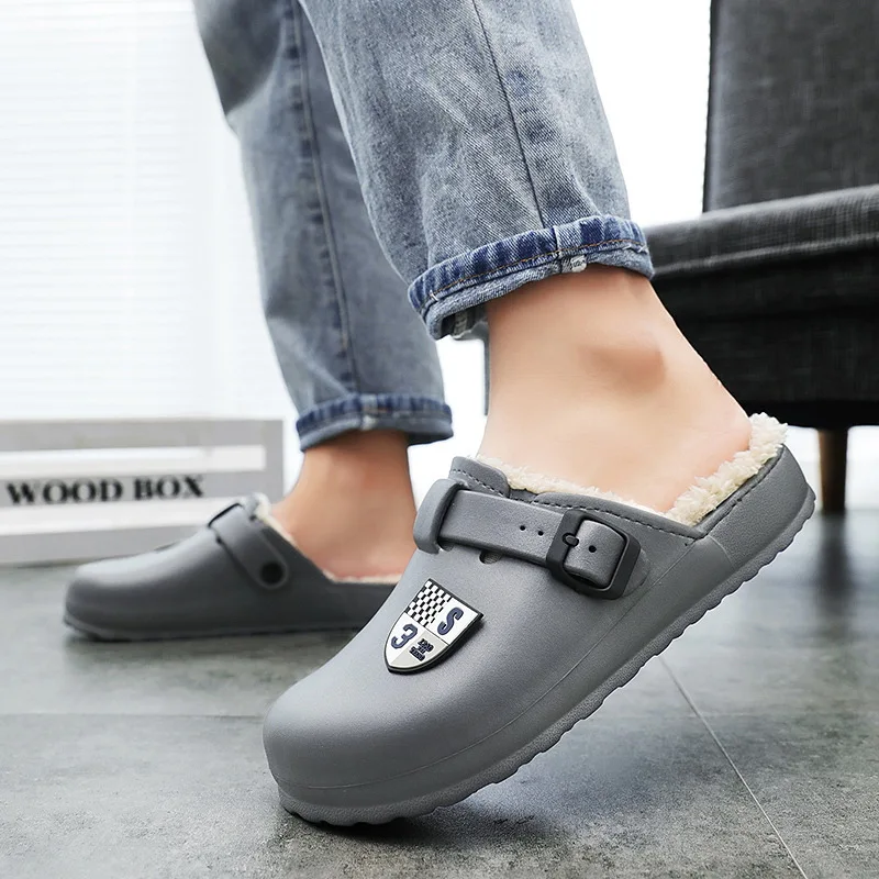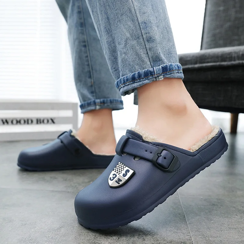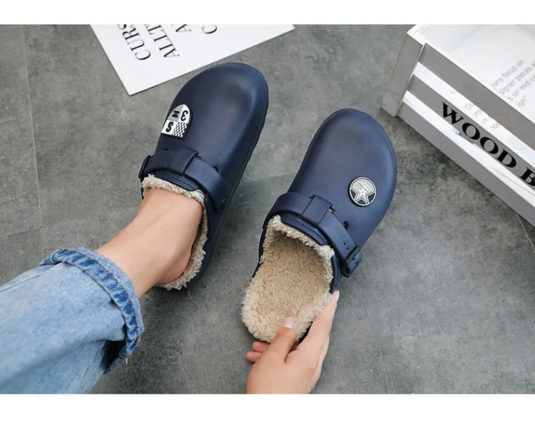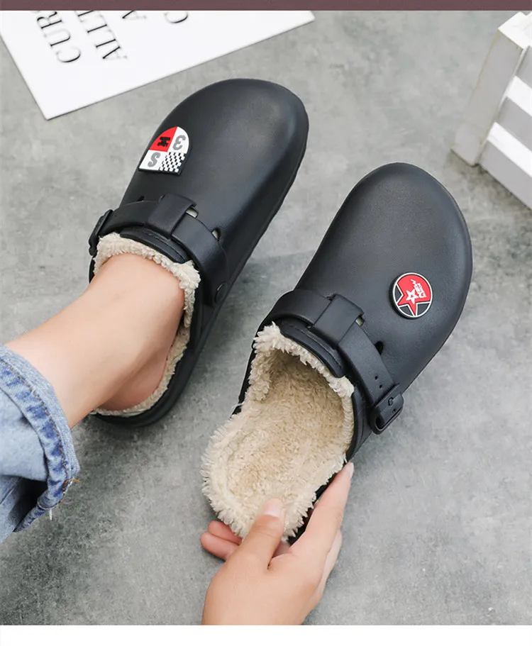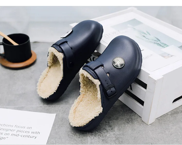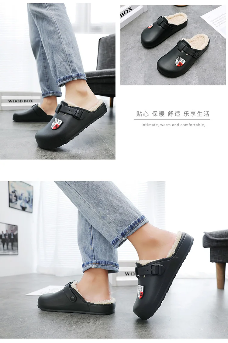 Новинка; Зимние мужские водонепроницаемые туфли сабо из искусственн...