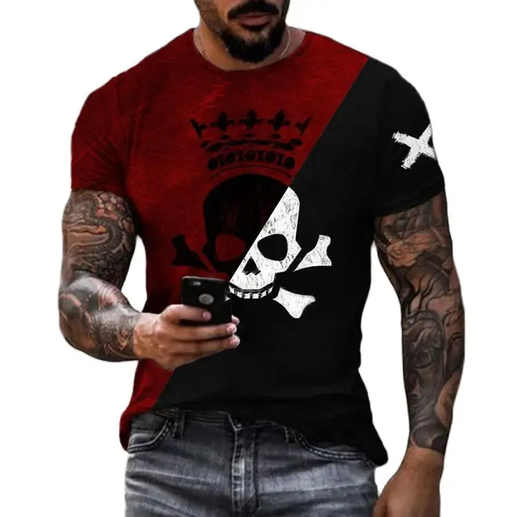 Футболка мужская с 3D-принтом черепа, модная дышащая уличная одежда...