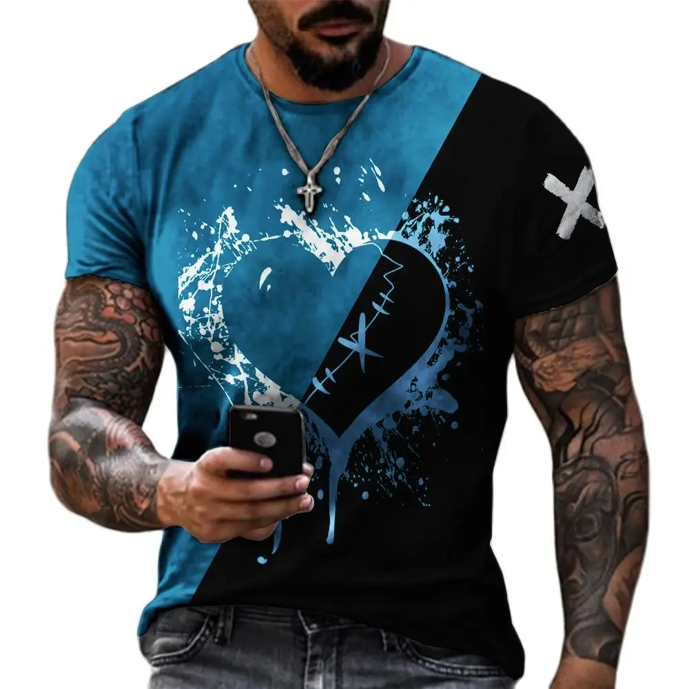 Мужская футболка с графическим принтом, повседневная крутая футболка контрастных цветов с принтом сердца и черепа, 2021