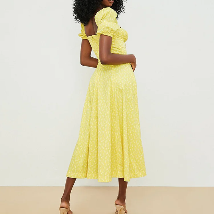 Летнее пляжное платье с коротким рукавом-фонариком и драпировкой на груди