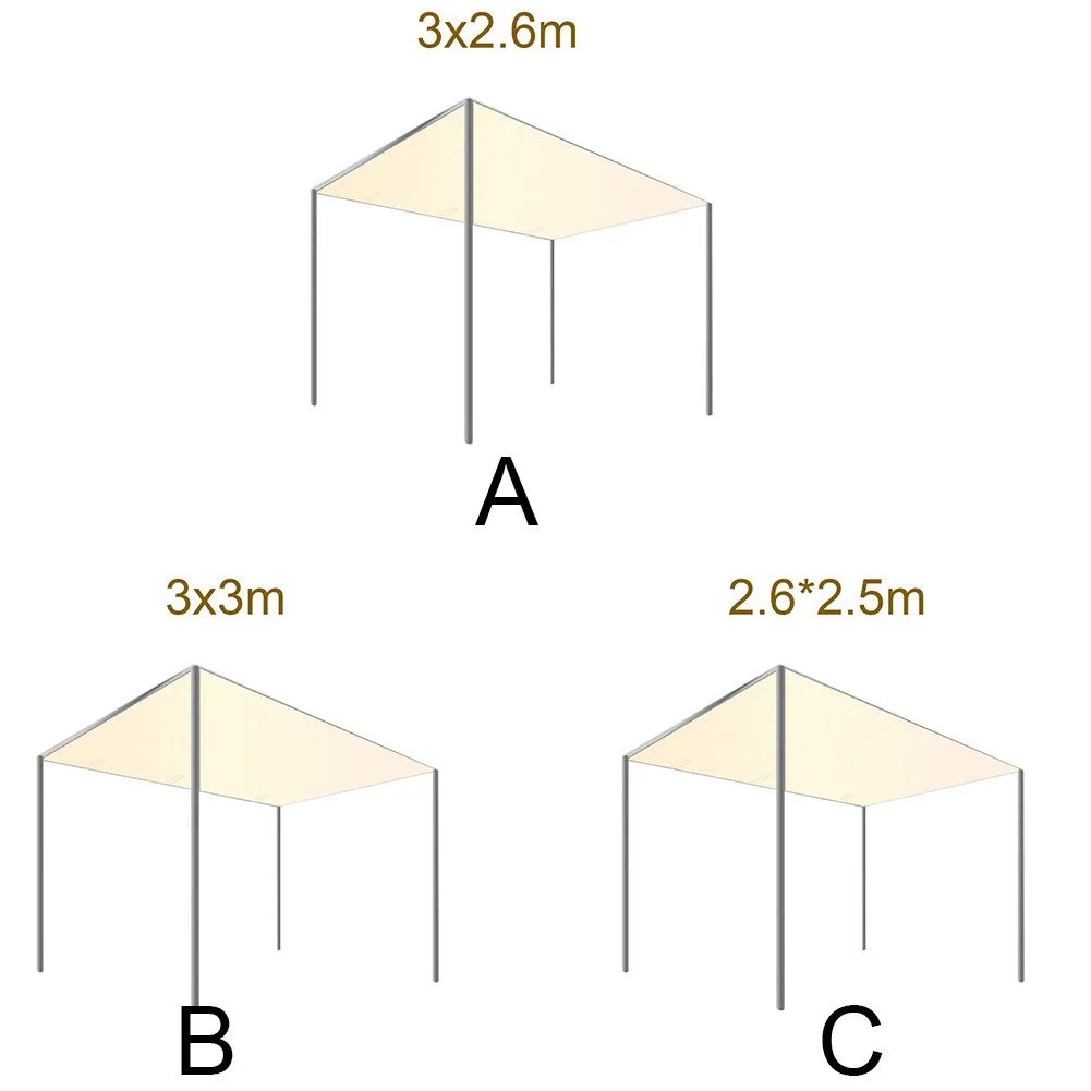 Точки пули:1. 300D навес верхней крыши сменная крышка наружная водонепроницаемая.2. Цвет: бежевый.3. Размер: прибл. 3x3 м, 3x2,6 м, 2.6x2.5м4. Номер модели: теневые паруса, сетка корпуса.5. Примечание: изображения приведены только для справки, пожалуйста, ссылайтесь на реальный товар. Спасибо за понимание!