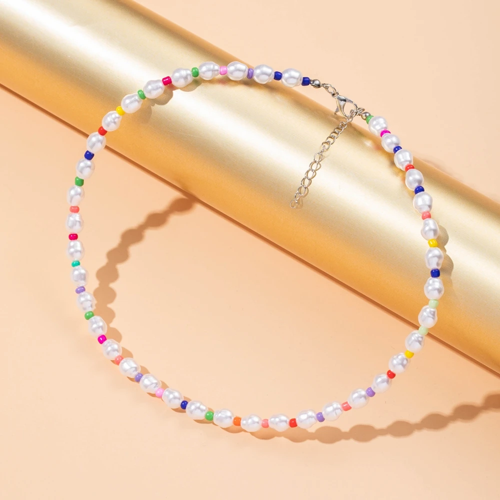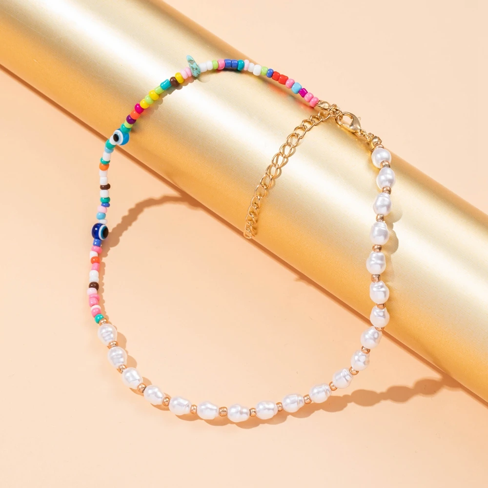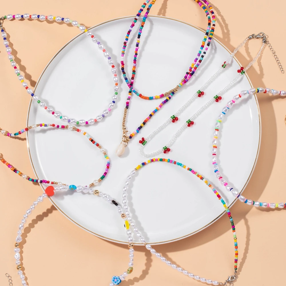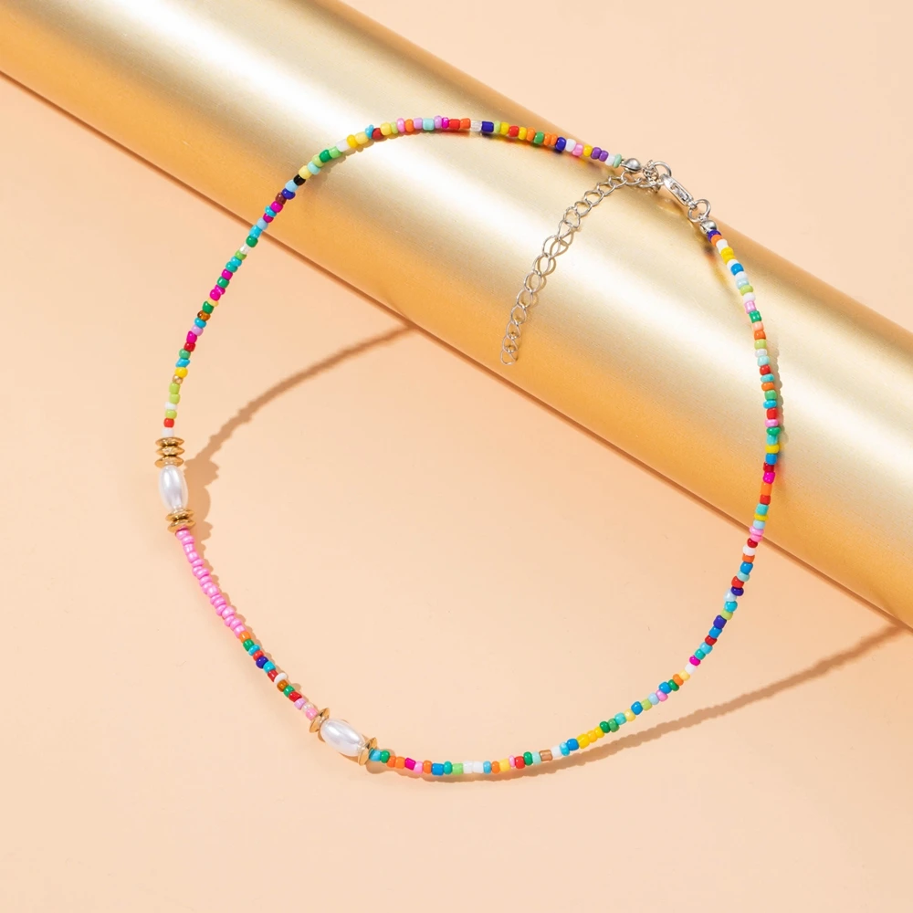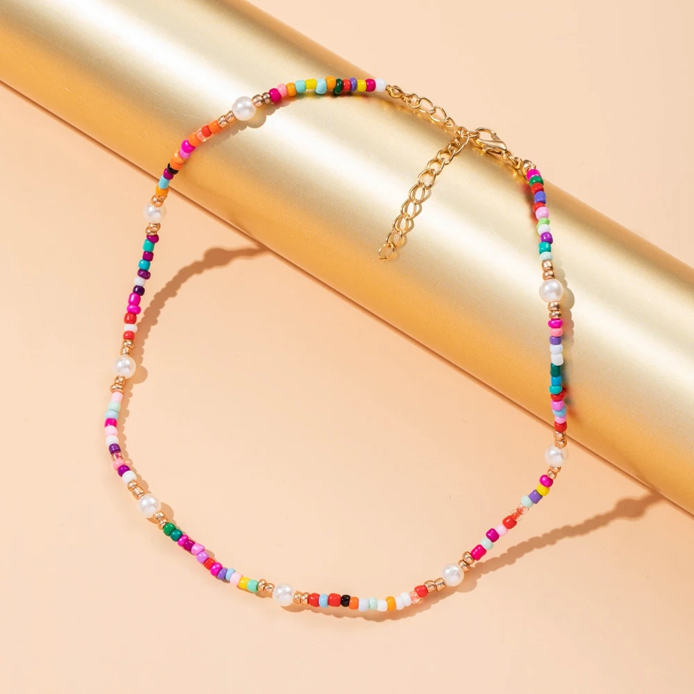 Женское богемное ожерелье с цветными бусинами , летнее короткое оже...