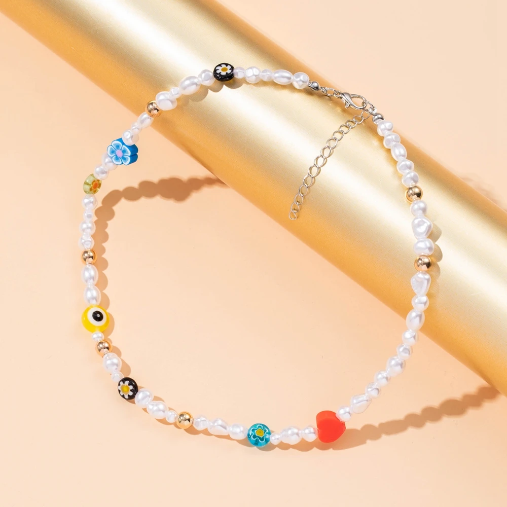 FNIO Y2K стиль цветок из бисера ожерелье для женщин богемное красоч...