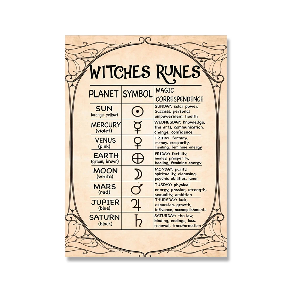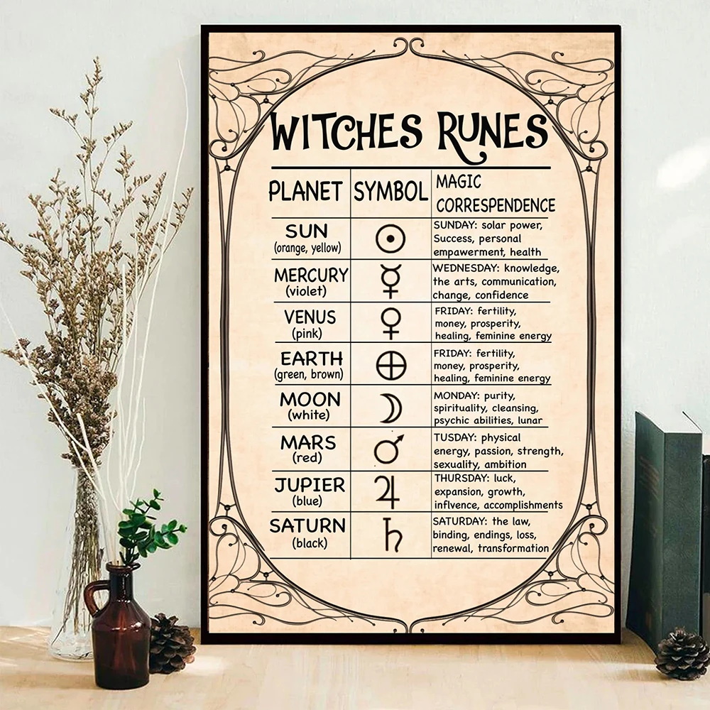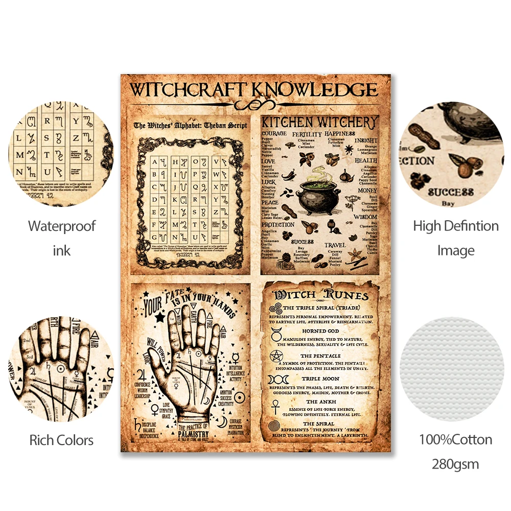 Винтажный постер ведьмы руны ведьмы в научном стиле художественный постер печать волшебных знаний роспись на холсте Цитата подарок кухонный домашний декор