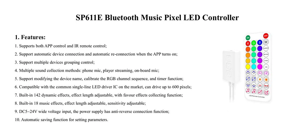 Смарт-пульт дистанционного управления RGB SP611E, Bluetooth музыкальное приложение IR38, для WS28112812B, Адресуемая светодиодная RGB-лента