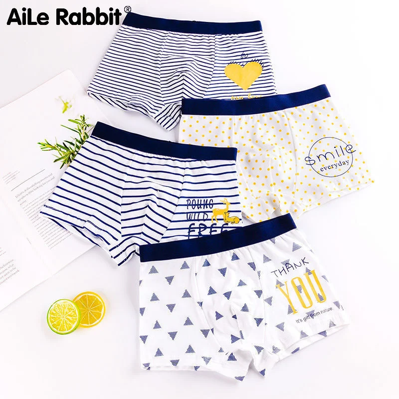 3 шт., хлопковые трусы-боксеры для мальчиков, в полоску