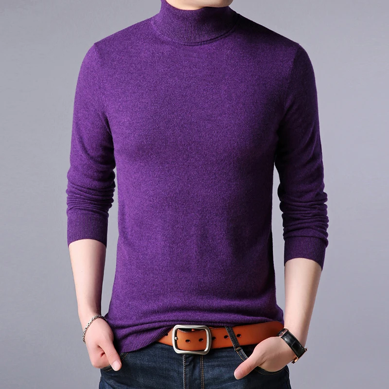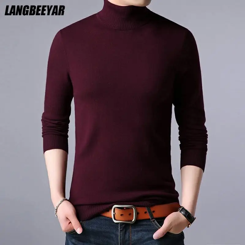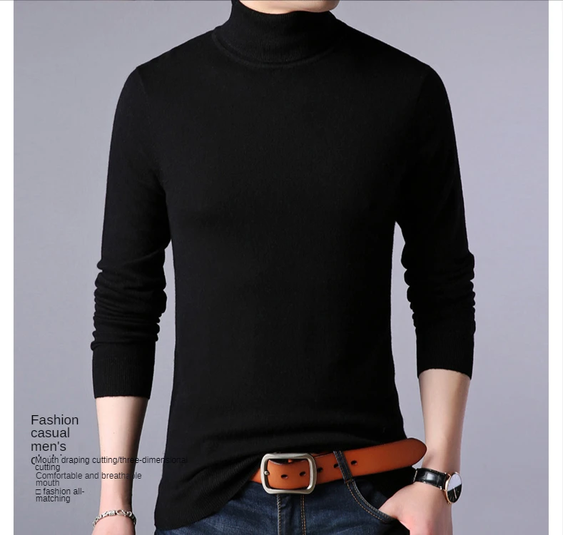 Вязаный мужской свитер, шерстяной, однотонный, осенне-зимний, Повседневный, 100%