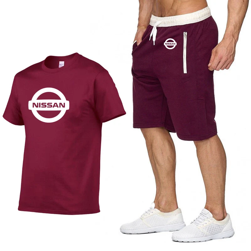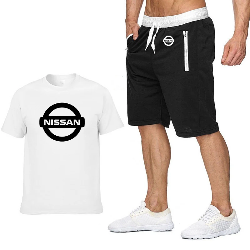 Футболка мужская с коротким рукавом и логотипом автомобиля Nissan, Повседневная рубашка в стиле хип-хоп, хлопковая футболка высокого качества, штаны, костюм из 2 предметов, на лето