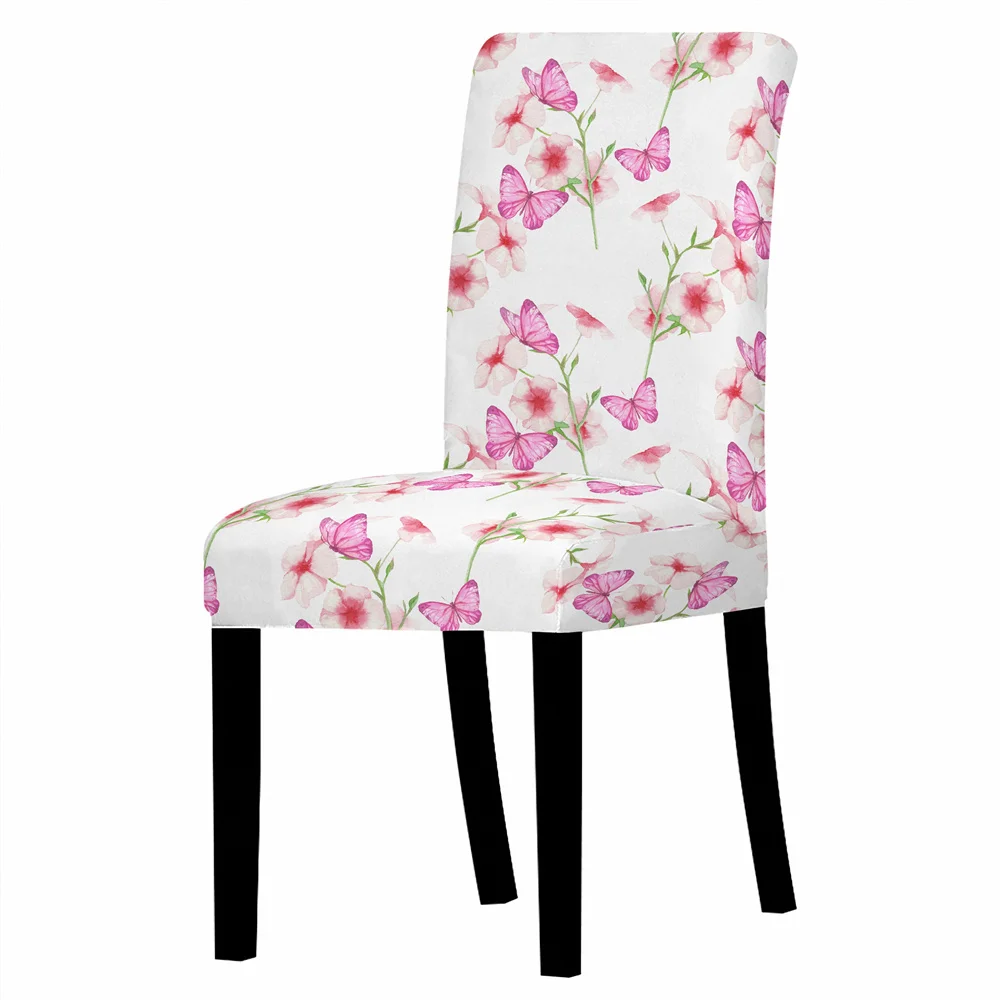 Эластичный Чехол для стула с цветами лотоса, чехлы на кресло стрейч, чехол для обеденного стула с розовыми цветами для столовой, кухни, свадьбы, банкета, гостиницы