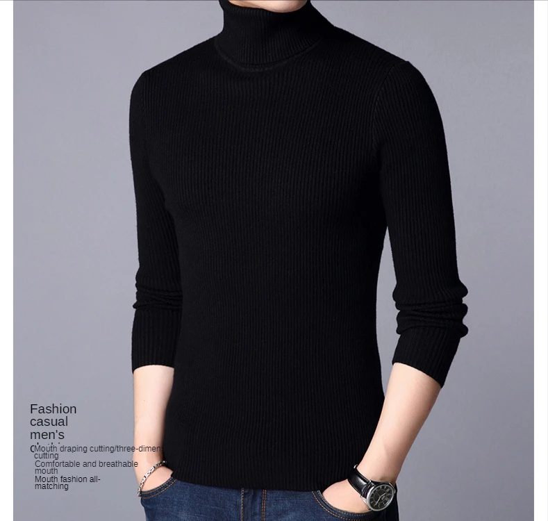 Мужской брендовый вязаный пуловер с высоким воротником, Базовая руб...