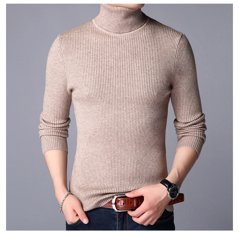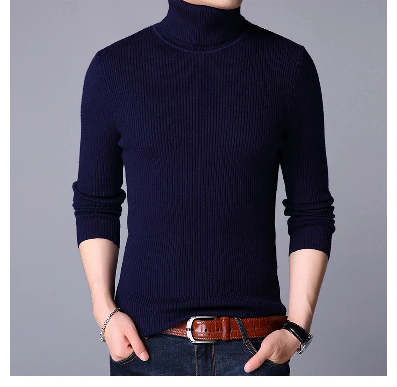 Высококачественный Теплый Новый брендовый вязаный пуловер свитер с высоким горлом зимний однотонный Простой повседневный мужской джемпер модная одежда 2022