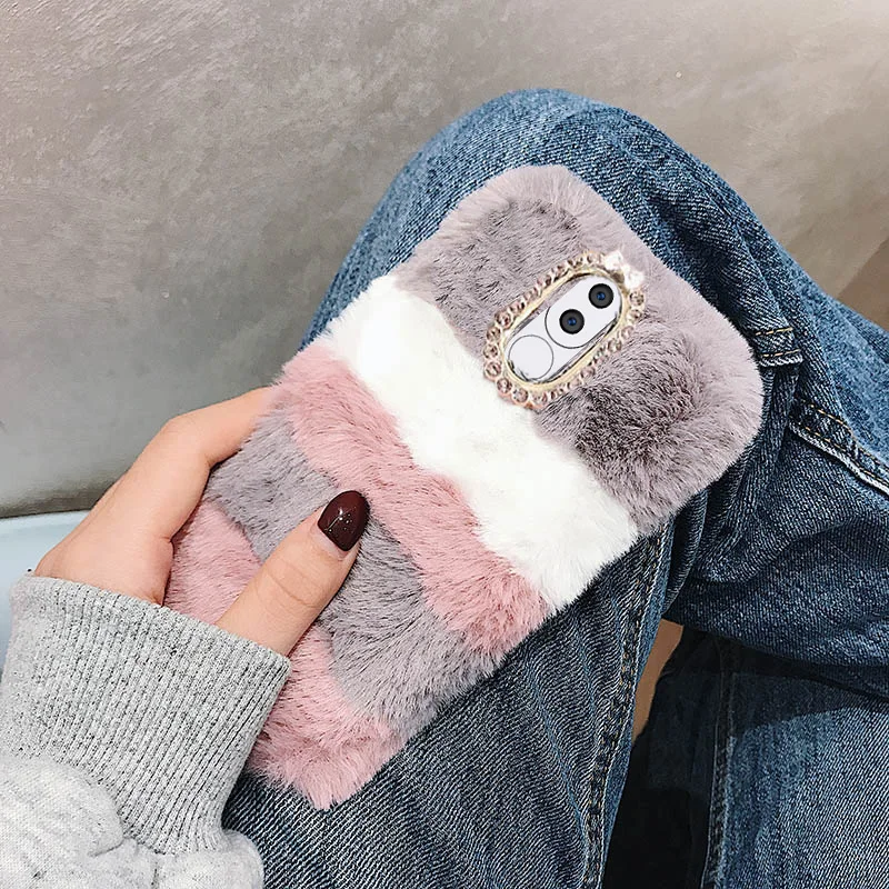 FeatureFashion Bling Diamond Winter Soft Furry Shell Plush Phone Case