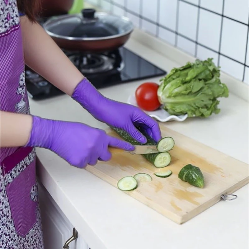 Нитриловые перчатки, 50/100 шт., розово-фиолетовые одноразовые перчатки без аллергии, резиновые перчатки для ручной работы, механическая кухня, красота