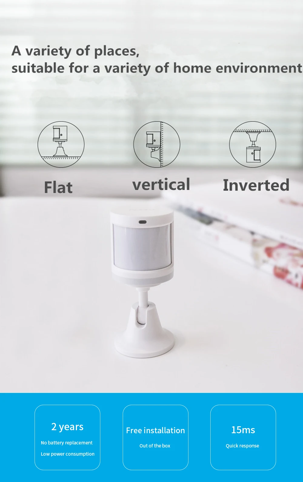 Вы можете поворачивать датчик движения на 180 ° и регулировать угол обнаружения с помощью подставки и наклейки датчика