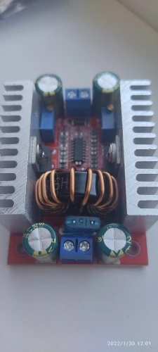 повышает хорошо, есть регулировка напряжения и максимального тока. вот только есть проблема.. 15 ампер это похоже максимальный ток на входе, а не на выходе... на тесте при повышении с 12В до 30В примерно на 7.5А на выходе - улетело 2 предохранителя, которые здесь ещё и приходится перепаивать, т.к. производитель сэкономил на держателе для предохранителя. ну и ещё сэкономил на термопасте, и поэтому на радиаторах было абсолютно сухо.. пришлось все дорабатывать как обычно по месту.. :((