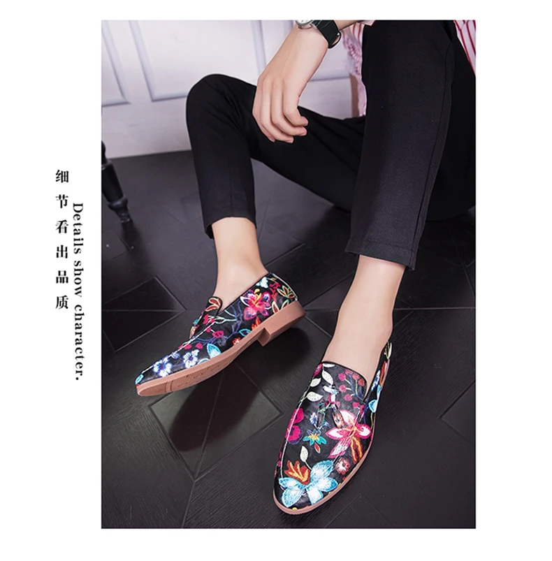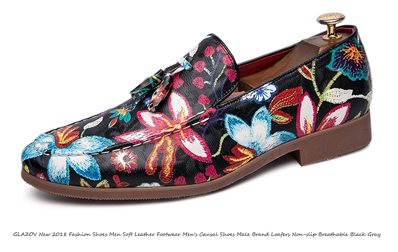 Кожаная обувь YRZL, новые мужские лоферы с цветочным принтом, Повсе...