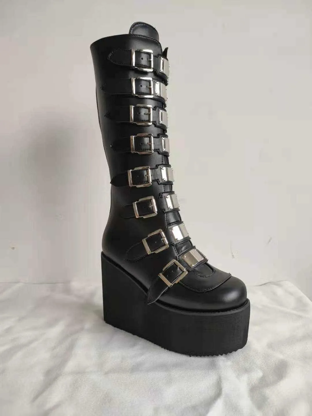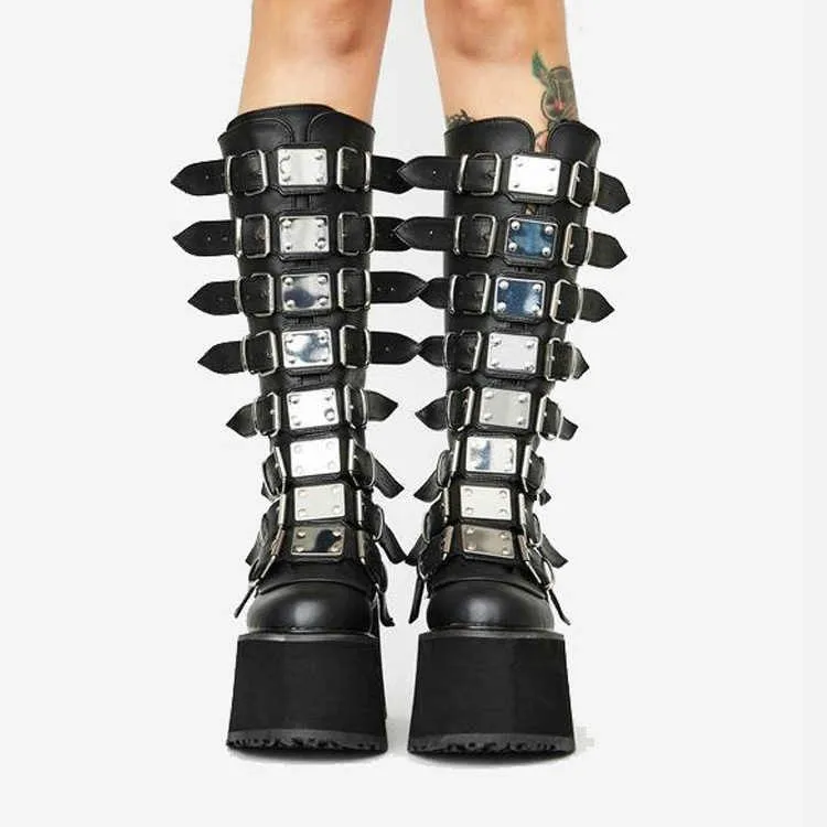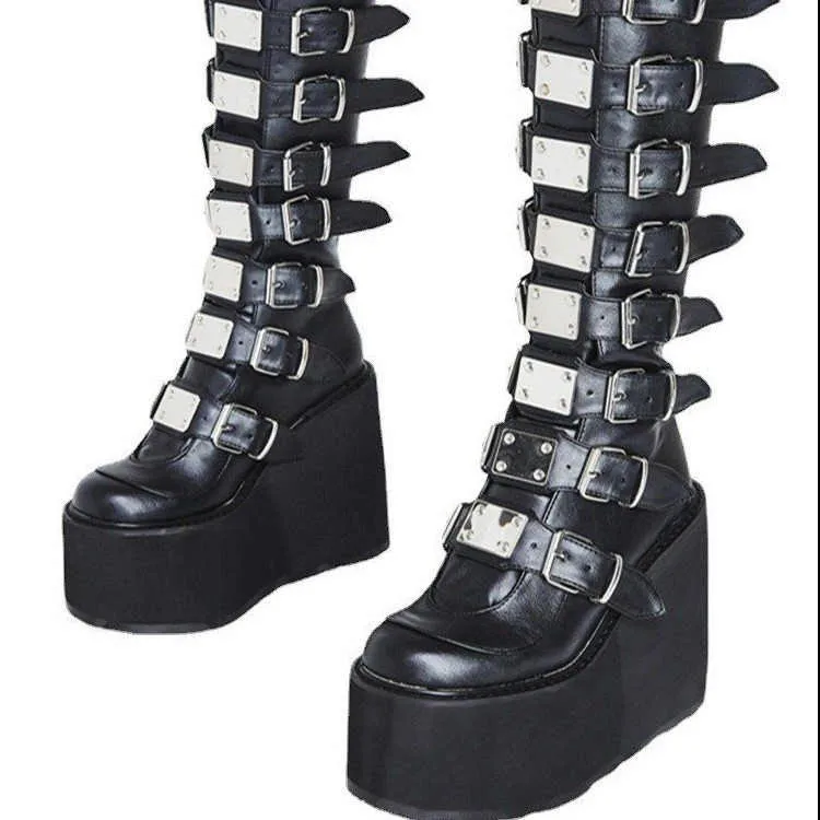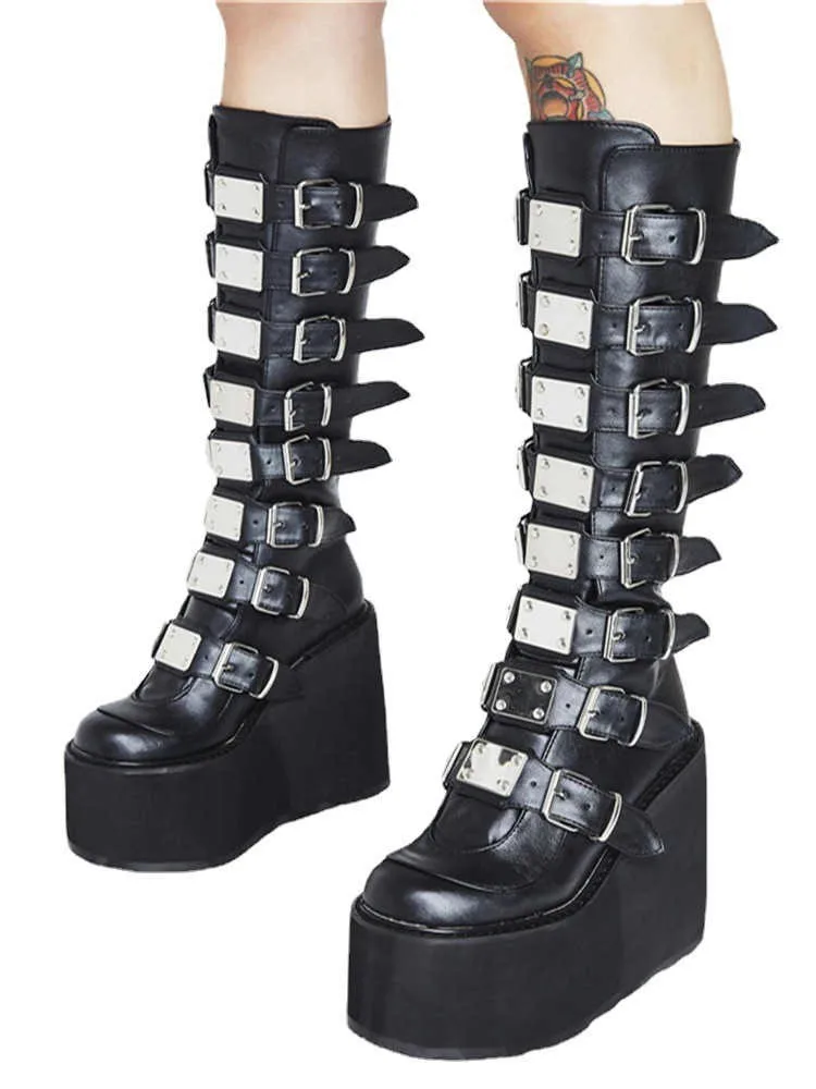 Женские туфли для косплея в готическом стиле, брендовые дизайнерские женские ботинки на танкетке, высокие ботинки до бедра на высоком каблуке, модные черные ботинки на платформе, 2022