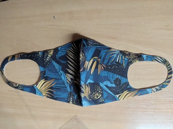 маска вырезана с тянущейся ткани, с незаметной просрочкой сверху и снизу для придания формы