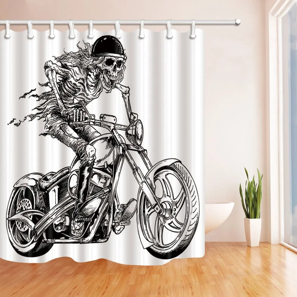 Занавеска для душа, шлем с черными линиями и оборками, мотоциклетные водонепроницаемые шторы из белого полиэстера с изображением скелета человека, домашний декор для ванной комнаты
