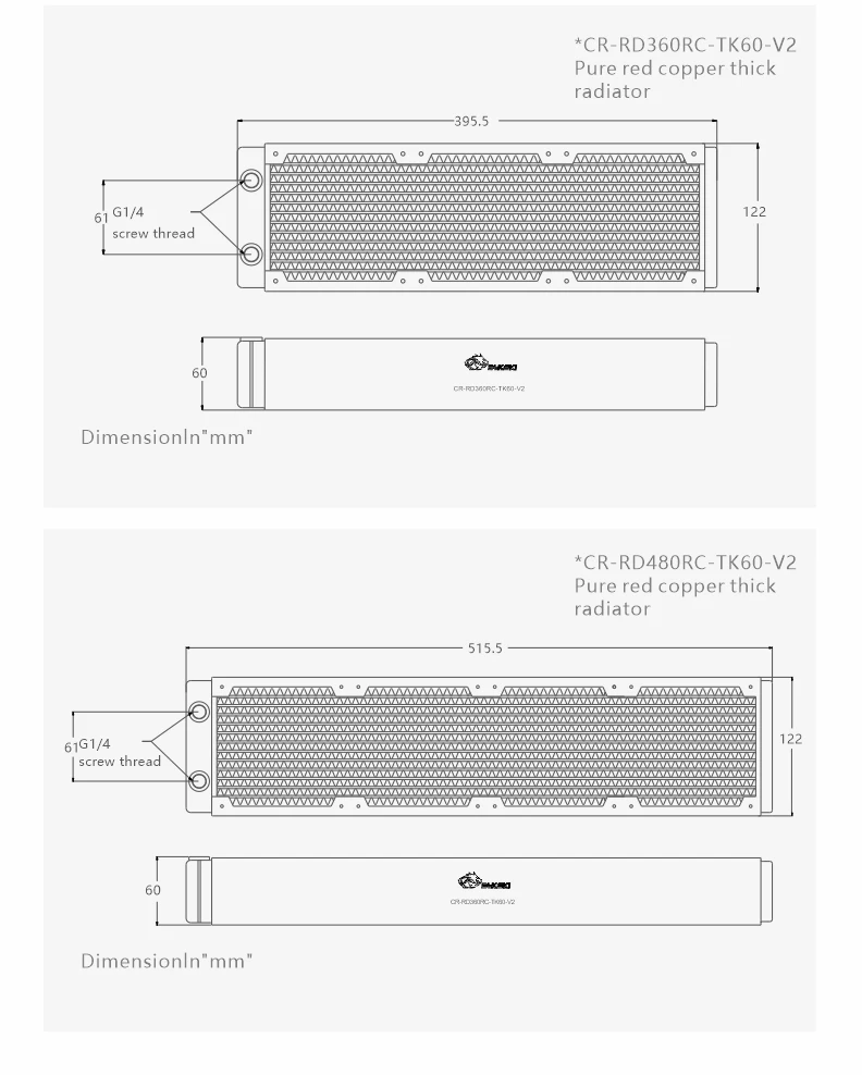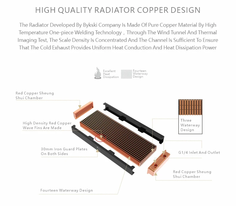 Медный радиатор BYKSKI 480 мм для охлаждения ПК, толщина 60 мм для ...