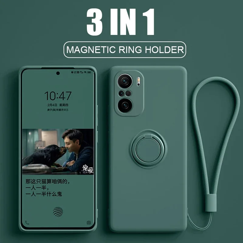 Силиконовый чехол с магнитным кольцом-держателем для Xiaomi Redmi Note 10 9 Pro 10S 9S Mi 11 10 10T Lite Poco F3 F2 X3 Pro, мягкий чехол с жидкостью