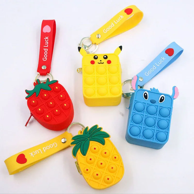 Игрушки покемон Пикачу Ститч фиджет силиконовый пузырьковый кошелек...