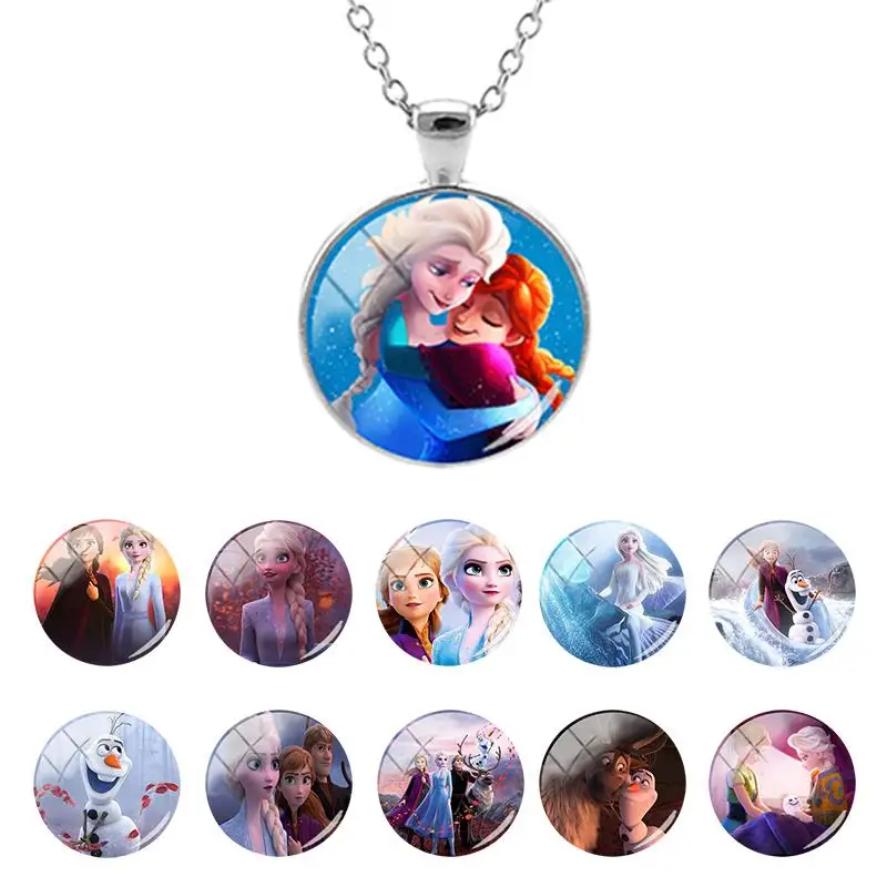 Дисней Холодное сердце принцесса Эльза Анна снежное стекло купол кулон ожерелье из мультфильма для девочек вечерние кабошон ювелирные изделия дочь подарок RT70Фотографии товара: