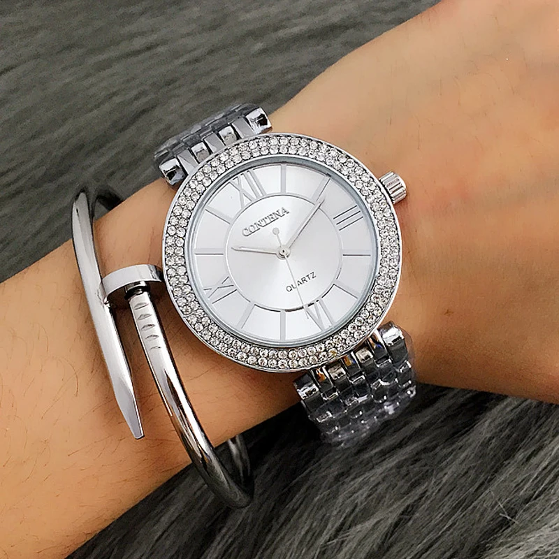 Женские Серебристые часы CONTENA, роскошные часы из нержавеющей стали