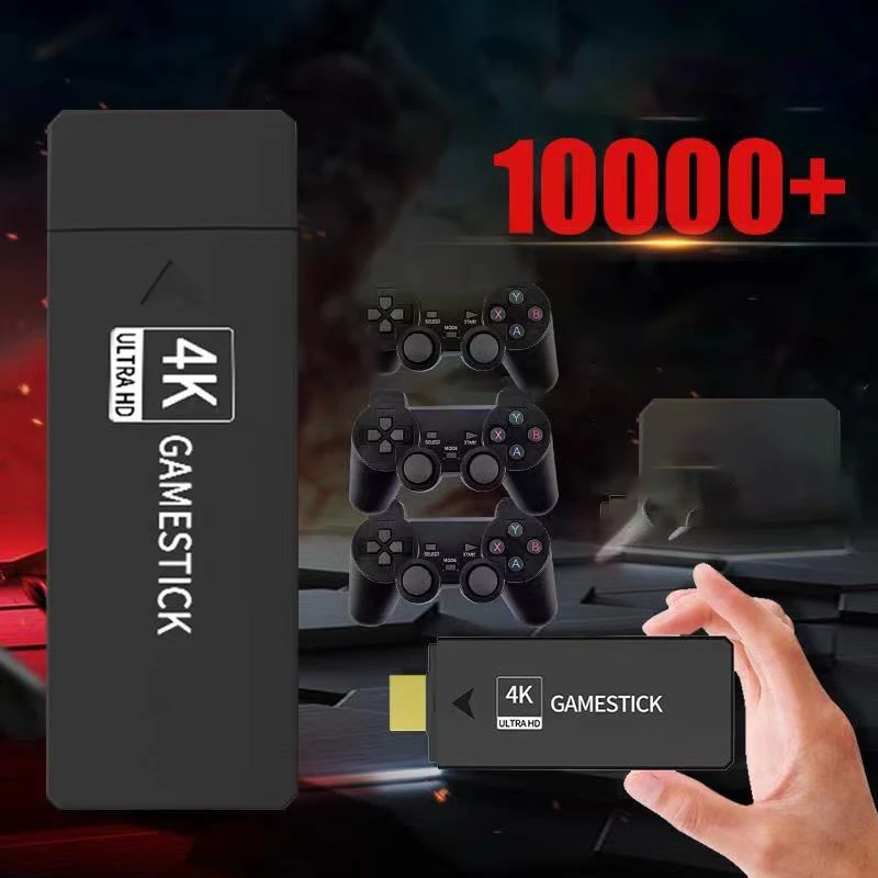 Игровая приставка 4K HD для всей семьи, ТВ, ретро видео, игровая консоль с двойным беспроводным контроллером 2,4 ГГц, 64 ГБ, встроенные 10000 игр, 40 эмуляторов