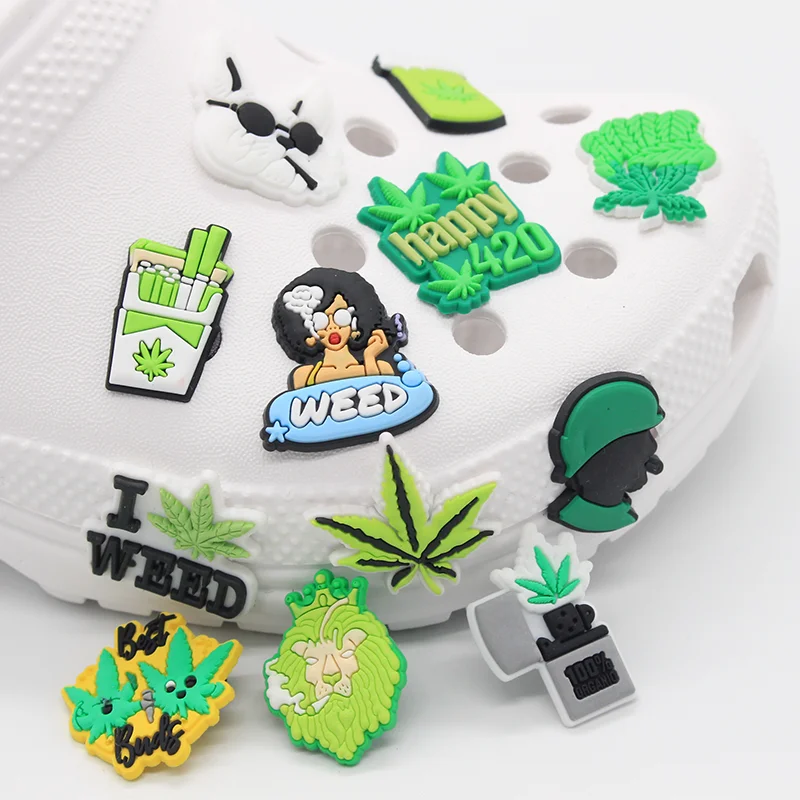 Лидер продаж, 1 шт., Симпатичные Подвески для обуви в виде сорняка, забавные аксессуары для садовой обуви в виде листьев, подходят для сандалий, пряжки, ПВХ, унисекс, подарки для вечерние, croc jibz