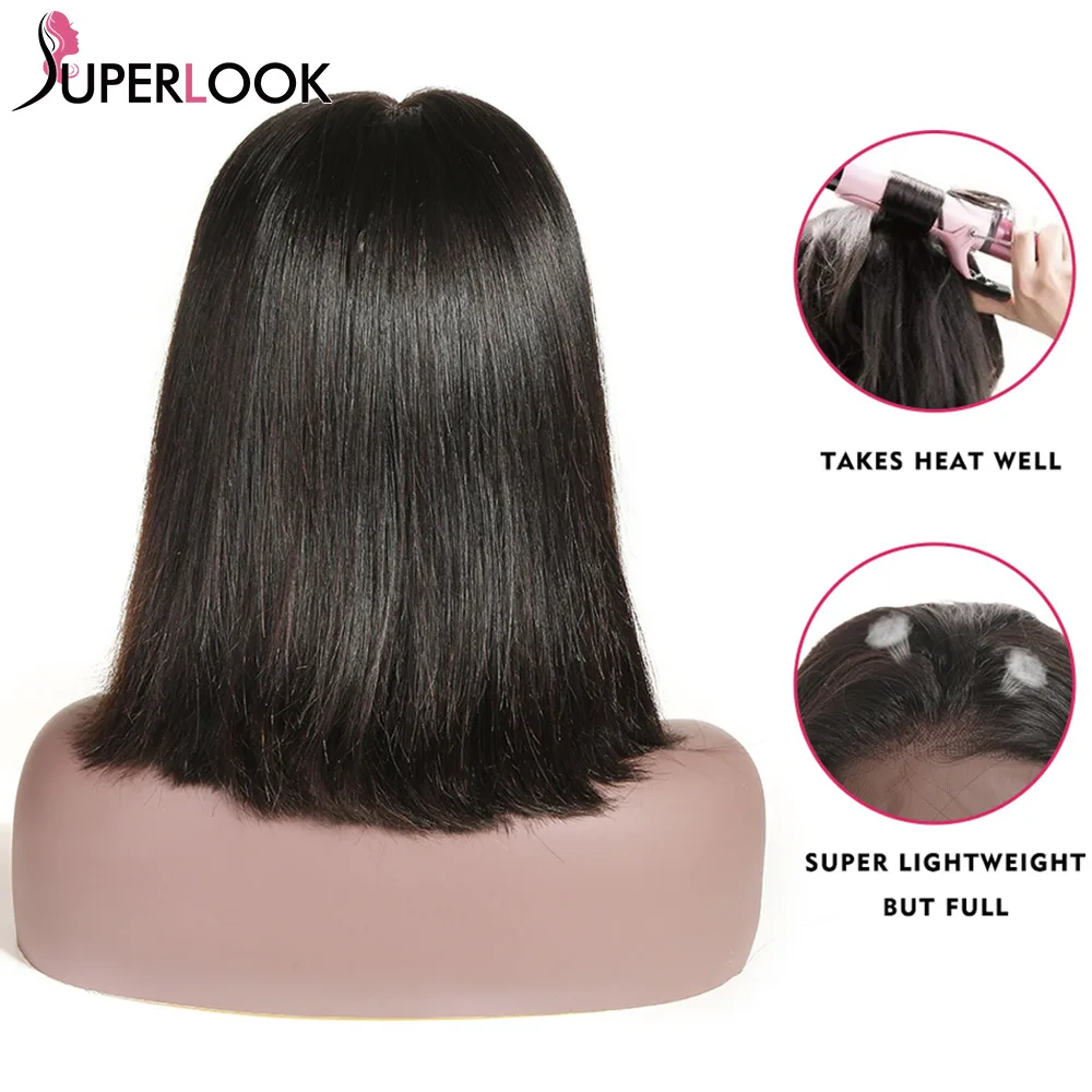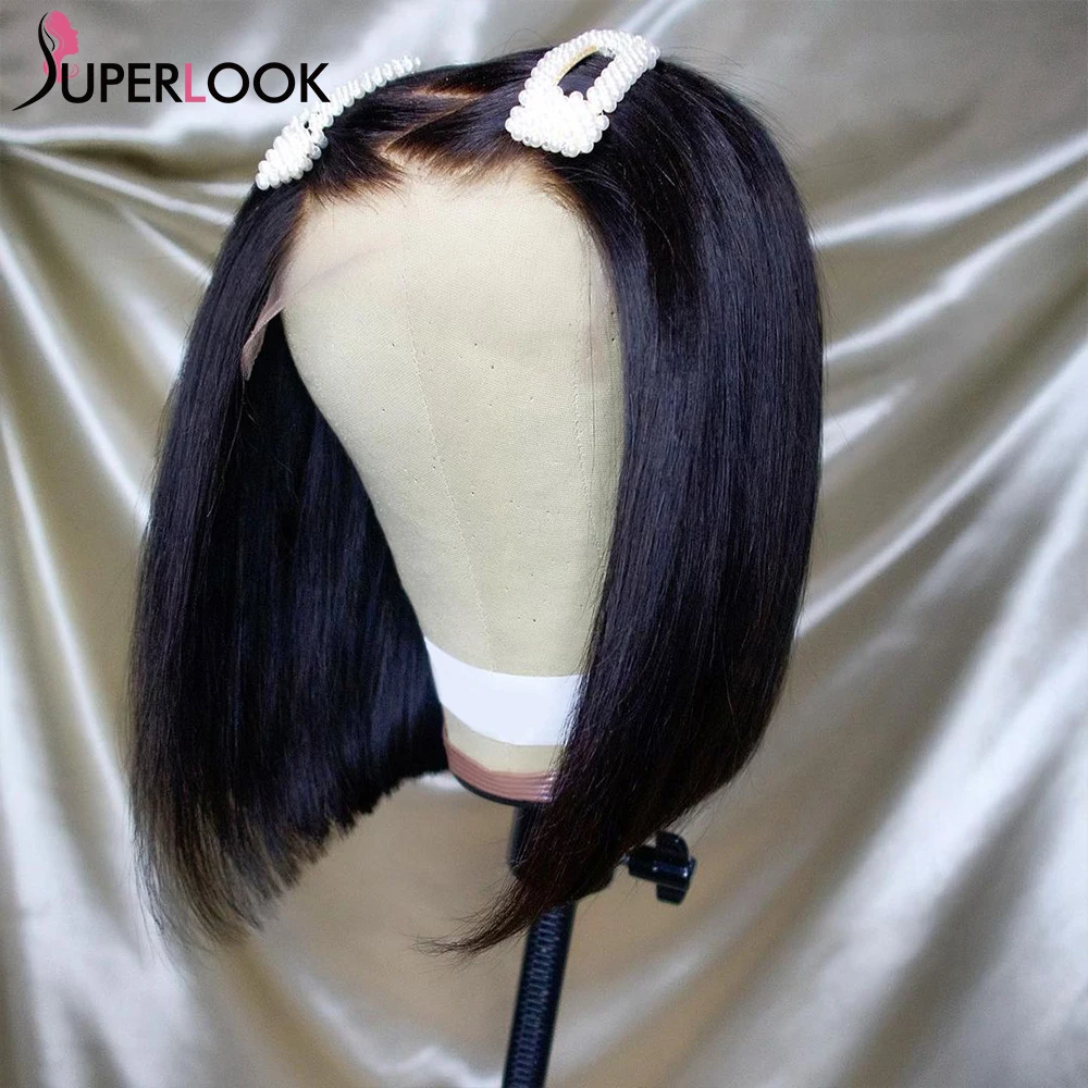 Парик Короткий Боб, прямые парики из человеческих волос 13x1 T, пар...