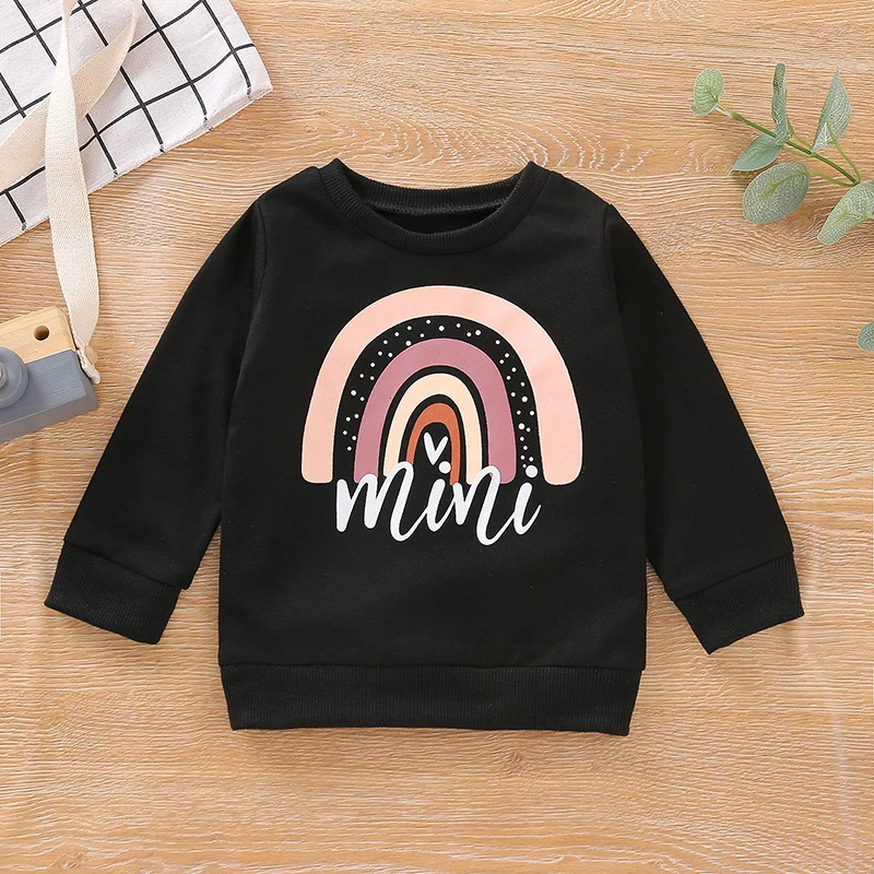 Зимняя футболка с длинным рукавом для маленьких девочек, футболка с радужным принтом для мальчиков, топы, детская одежда, Детская футболка