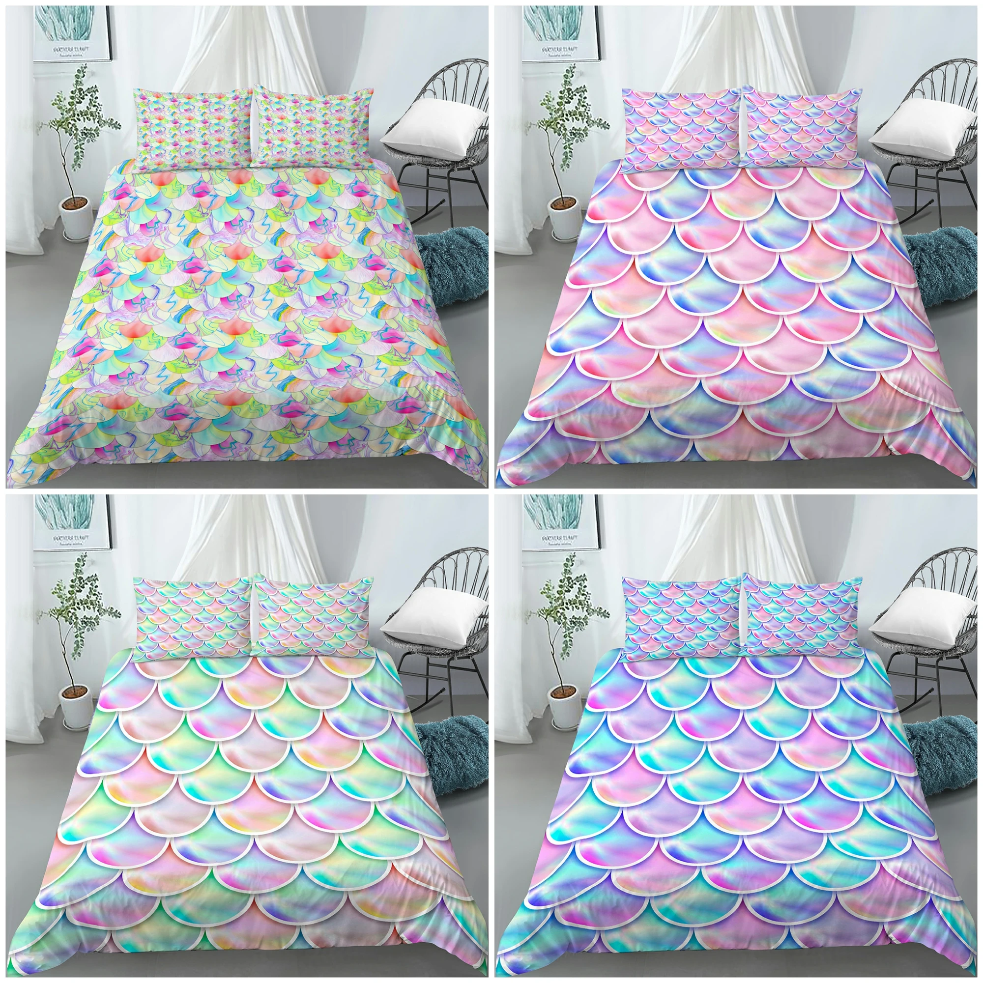 Мраморный геометрический Комплект постельного белья с пододеяльником и изображением чешуи русалки двойной Королевский пододеяльник наволочка 23 шт. комплект детского постельного белья