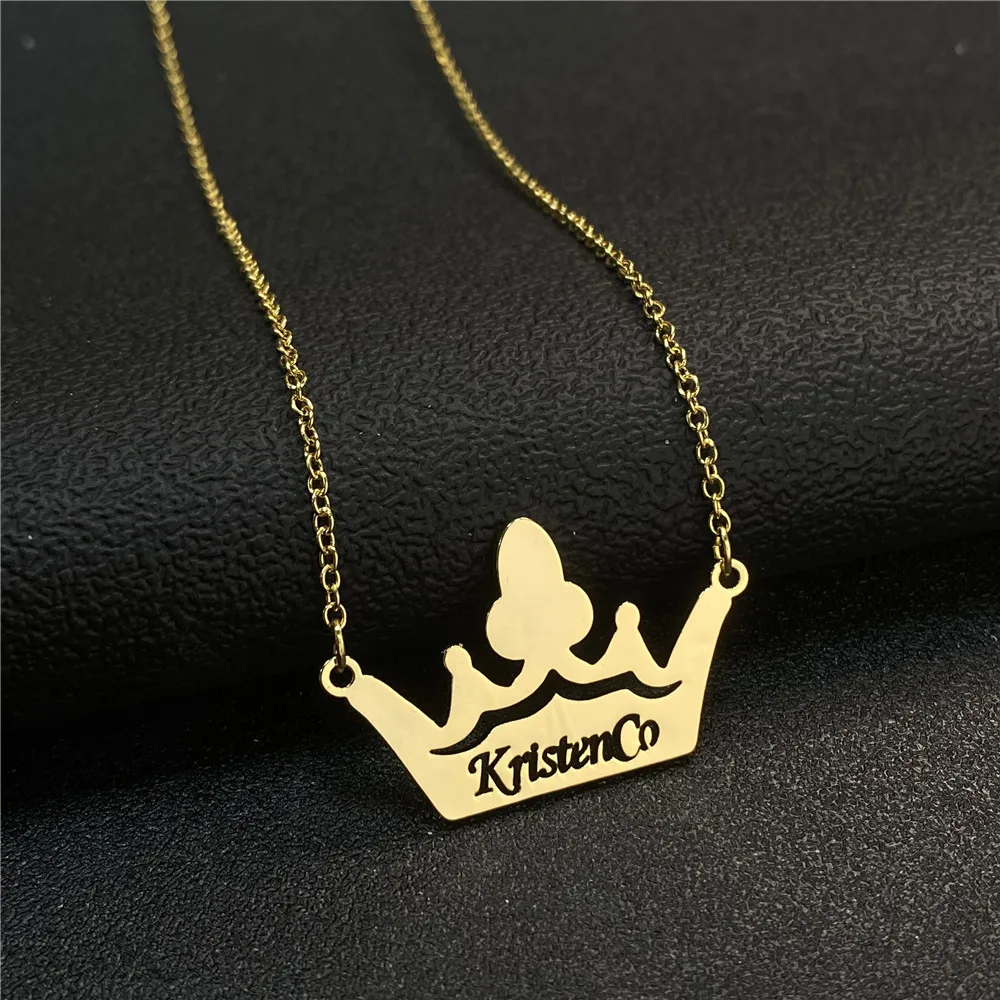 Ожерелье с подвеской в виде короны с именем на заказ от KristenCo, индивидуальная табличка с именем, ювелирные изделия для женщин, ожерелье, подарок