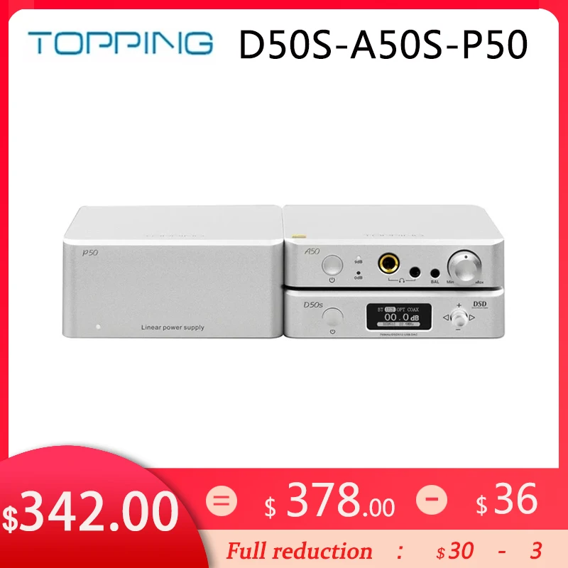 Декодер TOPPING D50S + усилитель для наушников TOPPING A50S + линейный источник питания TOPPING P50