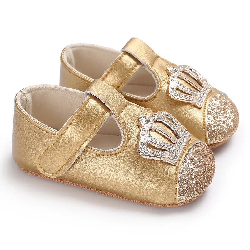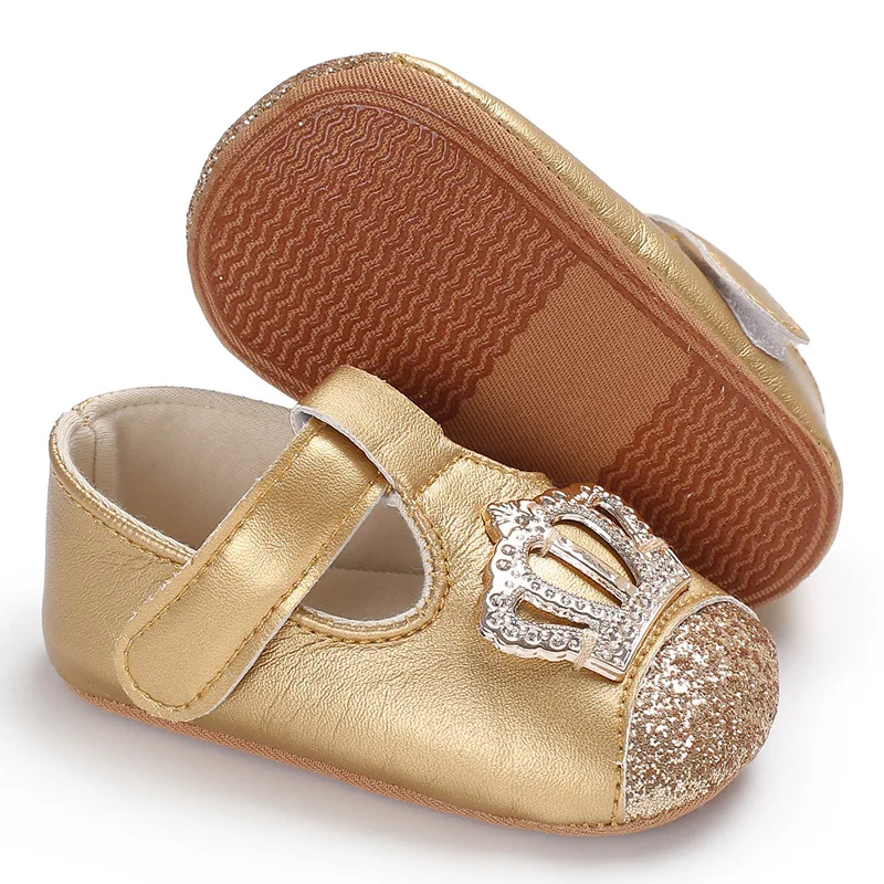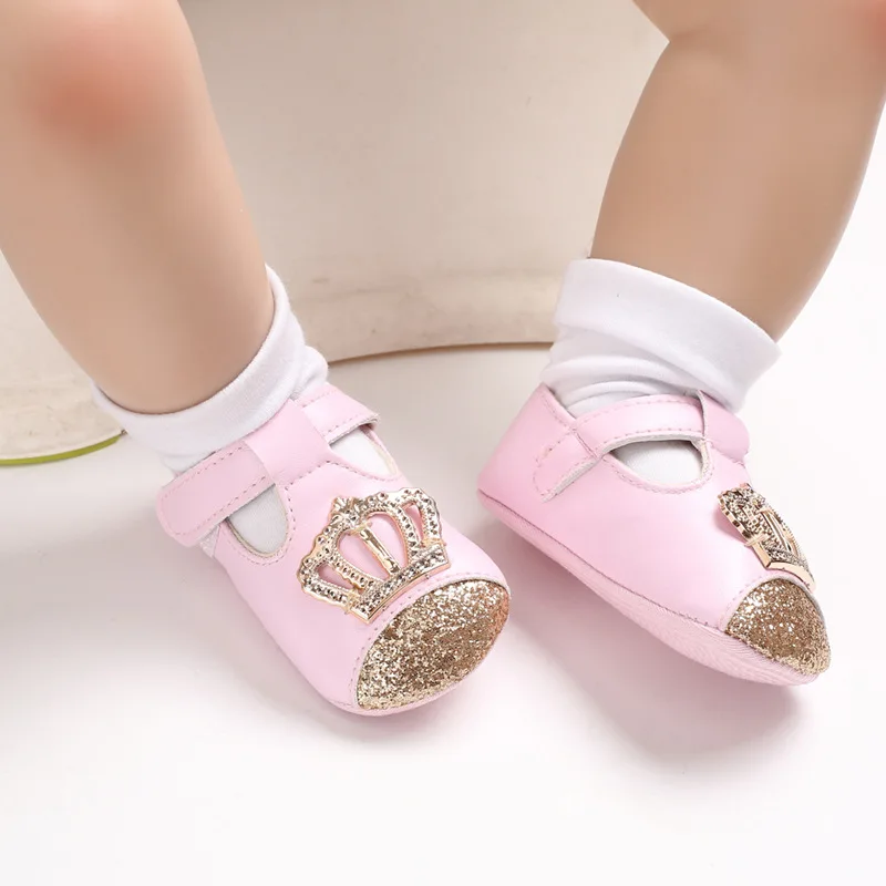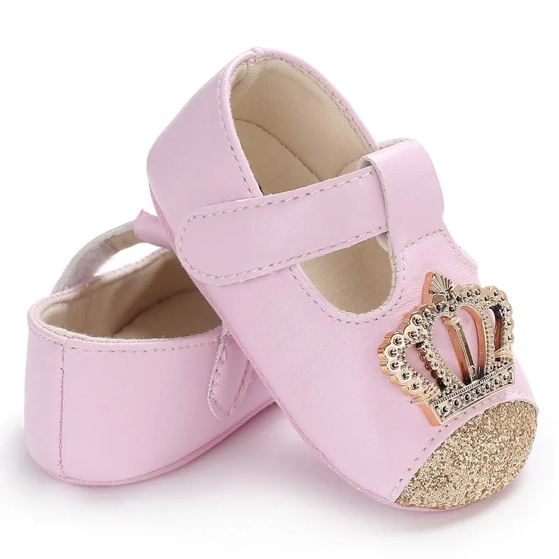 Туфли для маленьких девочек, милые ботинки из искусственной кожи с короной, цветами, резиновой подошвой, Нескользящие, детская обувь для новорожденных, детская кроватка, обувь для первых шагов