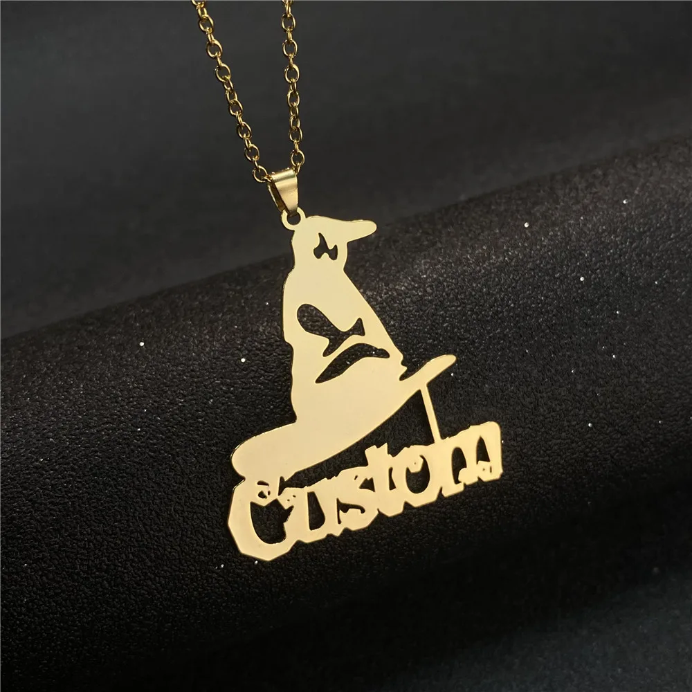 Ожерелье с именем на заказ KristenCo, ожерелье с именной табличкой на заказ с кулоном с узором, ожерелье в стиле Хэллоуина для подарка на Хэллоуин