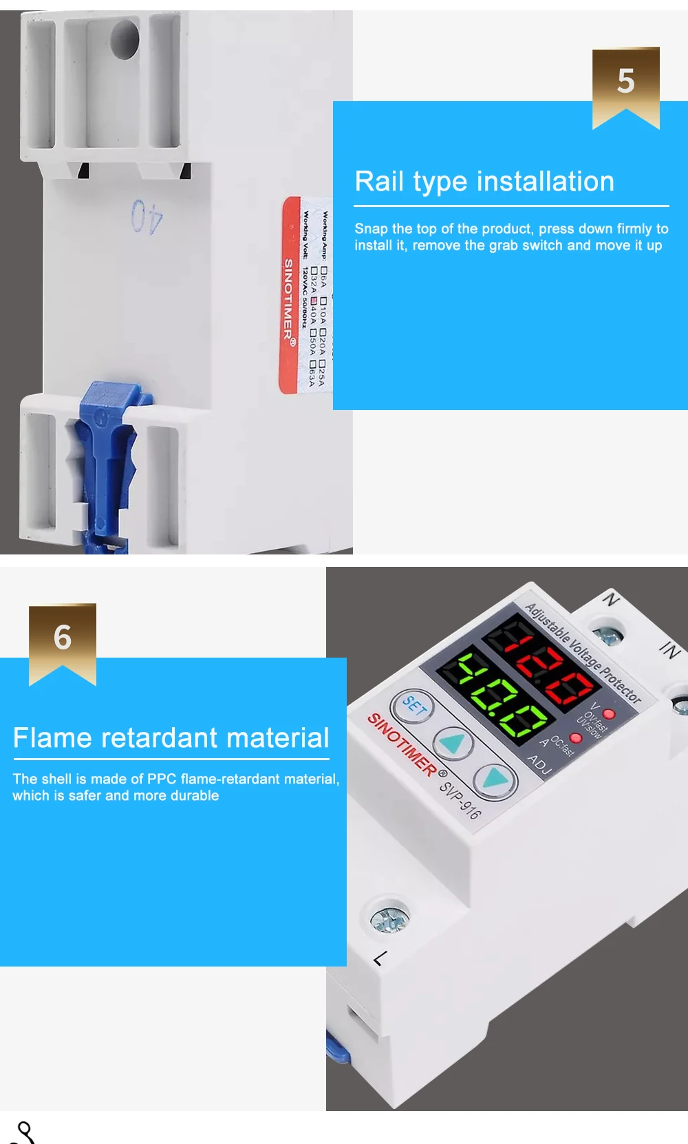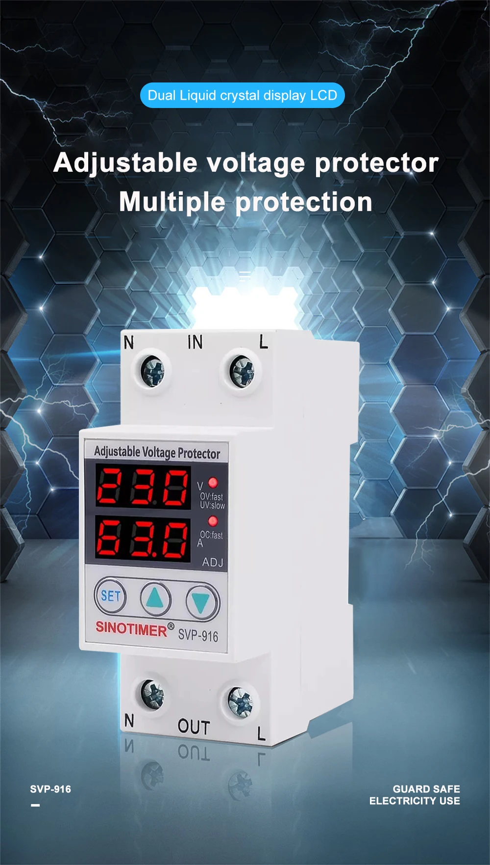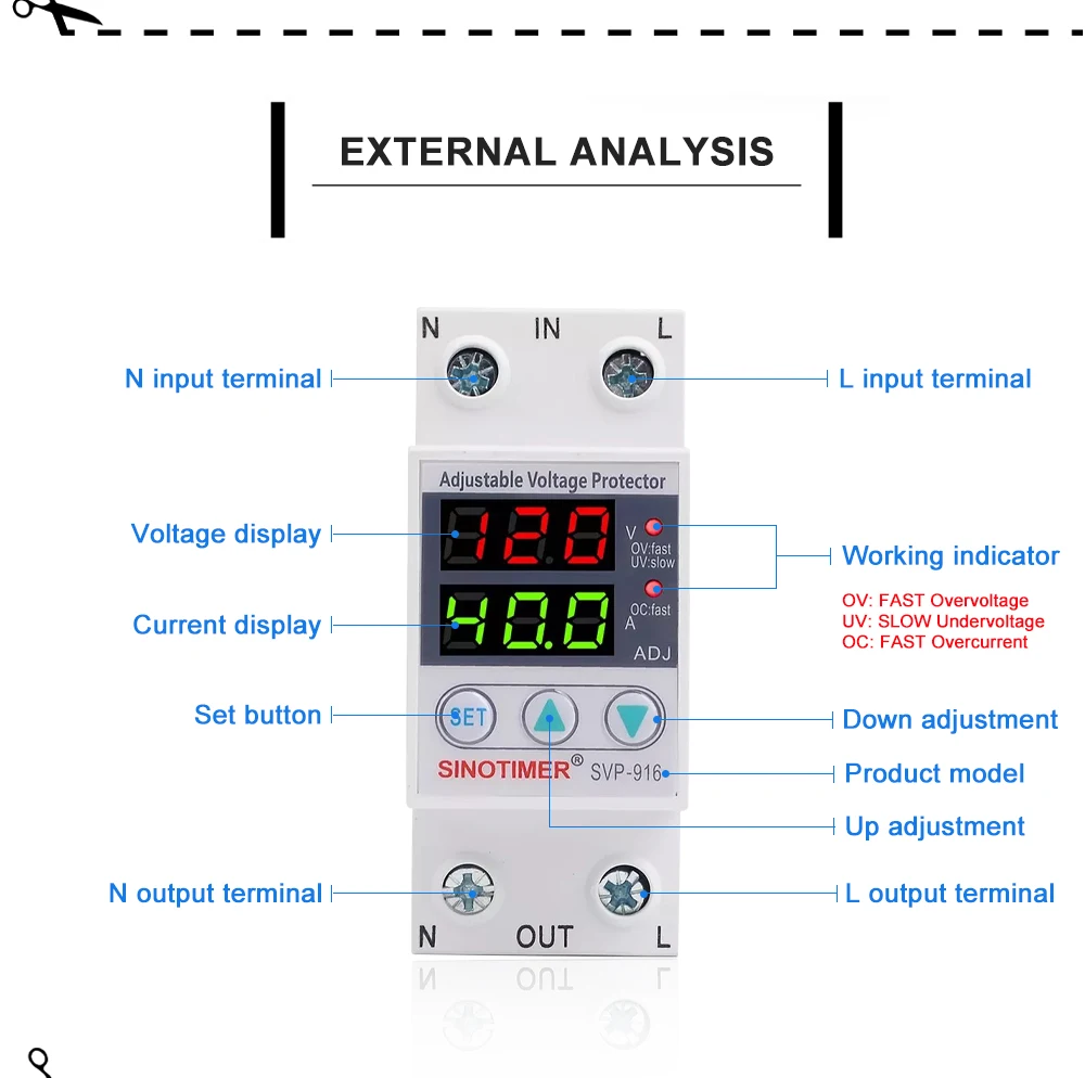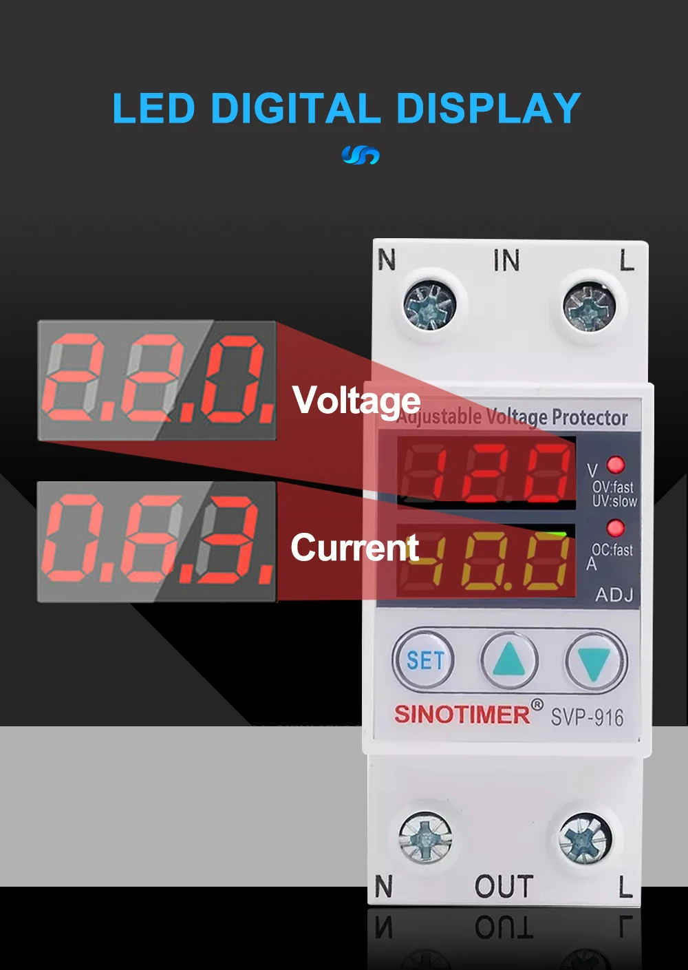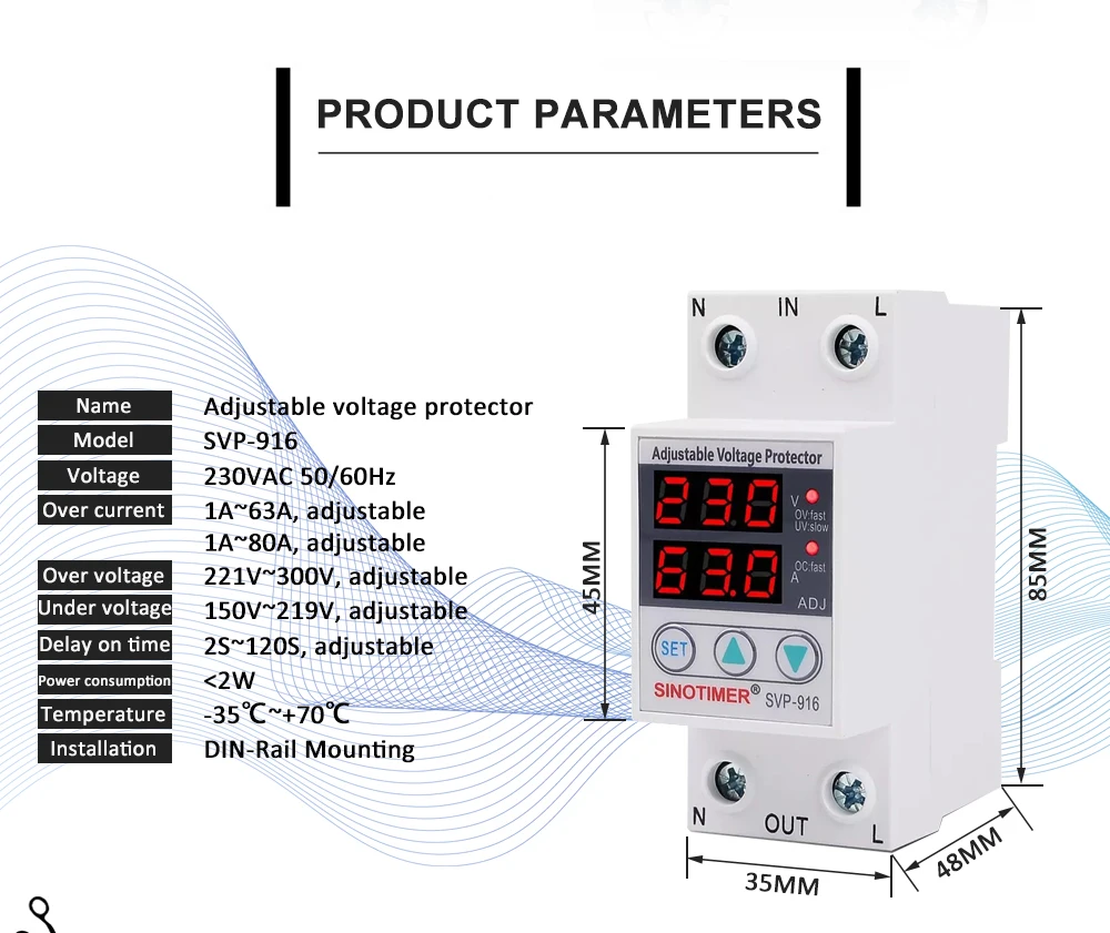 SVP серии SINOTIMER бренд автоматическая защита от перенапряжения и пониженного напряжения подходит для однофазного переменного тока 230 В пер. тока, 50/60 Гц, Номинальный рабочий ток 63A или 80A или меньше нагрузки.