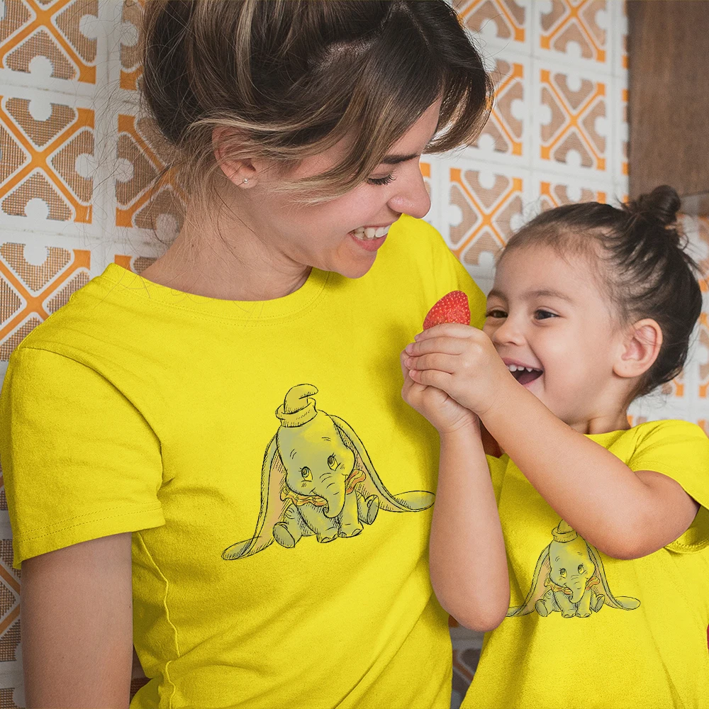 Одинаковая семейная одежда Disney, футболки с мультяшным принтом Дамбо, летние новые продукты, четыре сезона, топ с милым рисунком, трендовый комфорт