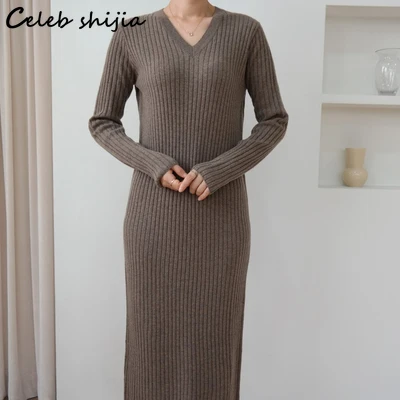 Новое кашемировое длинное платье, женское трикотажное платье с рука...