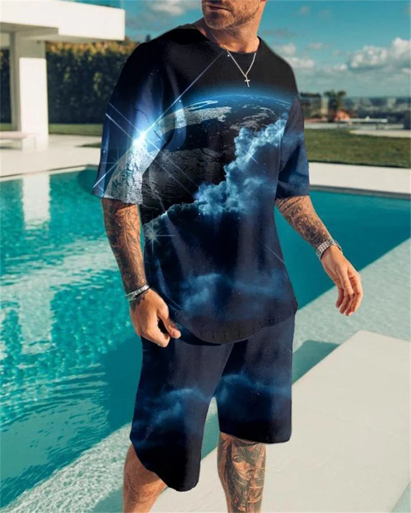 Новинка 2021, креативная 3d модная мужская Молодежная тонкая спортивная футболка с круглым вырезом и шорты
