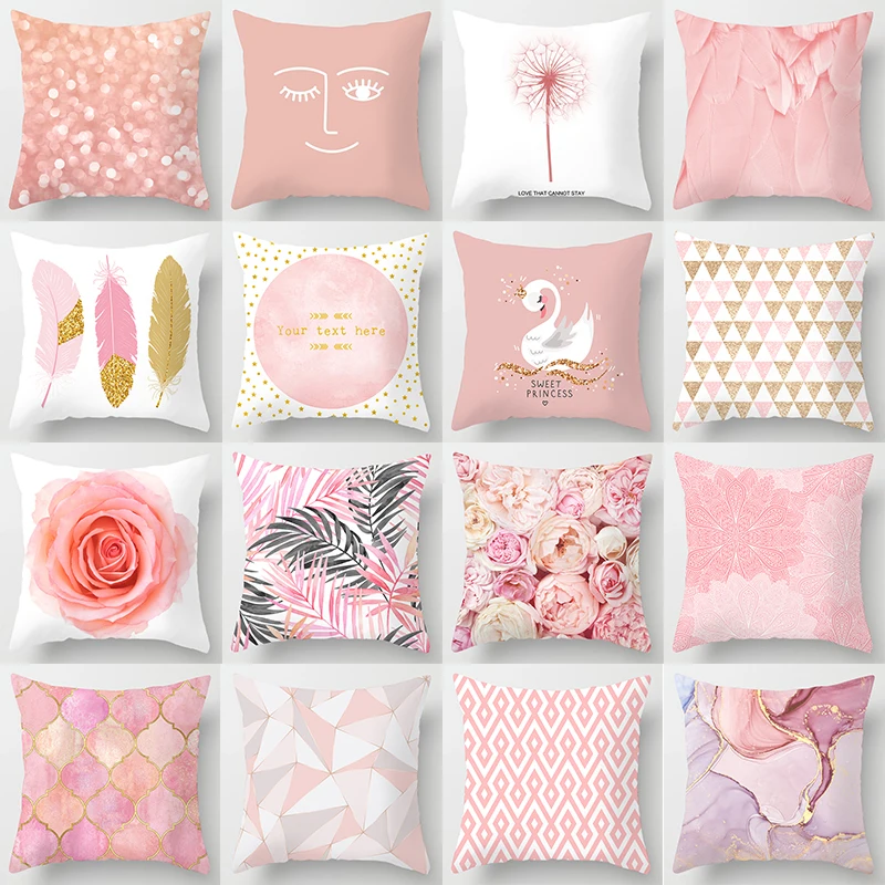 Розовая Женская наволочка с принтом, декоративная наволочка для див...