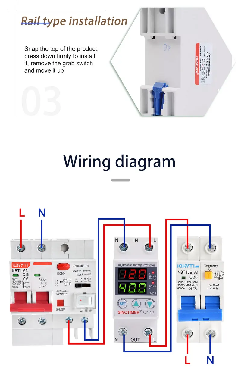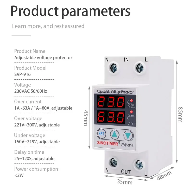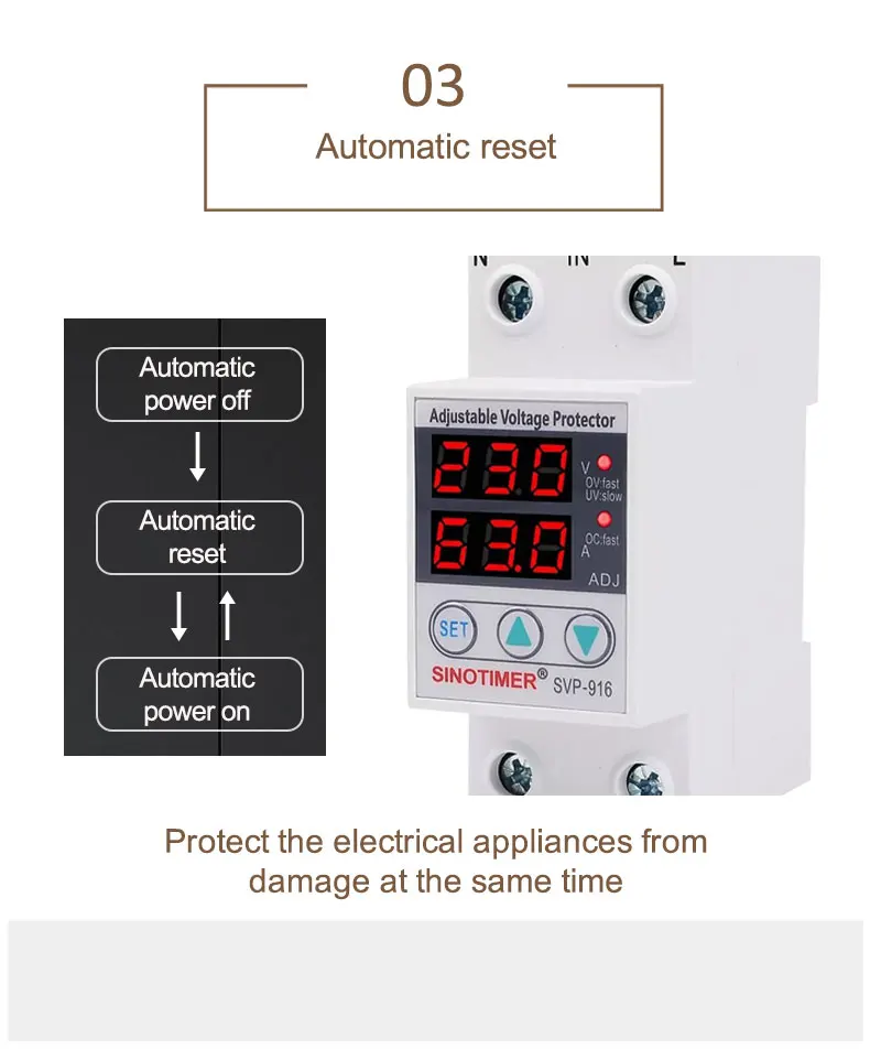 SVP серии SINOTIMER бренд автоматическая защита от перенапряжения и пониженного напряжения подходит для однофазного переменного тока 230 В пер. тока, 50/60 Гц, Номинальный рабочий ток 63A или 80A или меньше нагрузки.