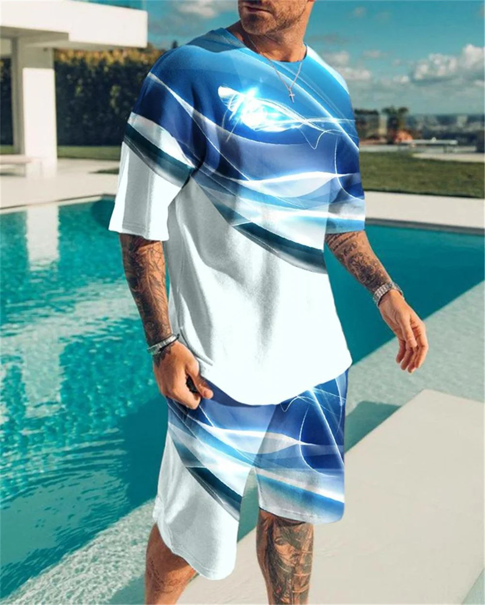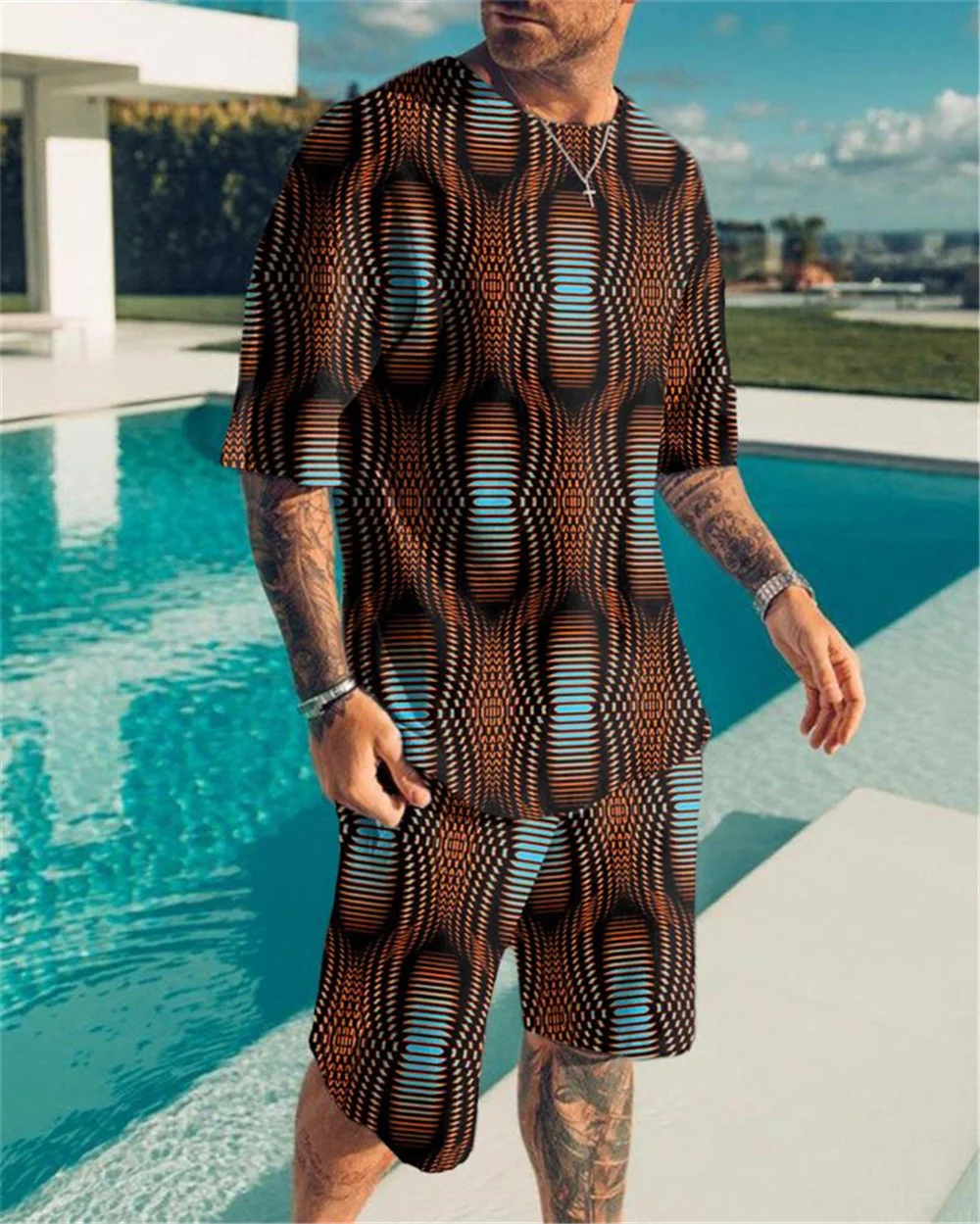 Мужская спортивная одежда, летний мужской костюм с геометрическим р...