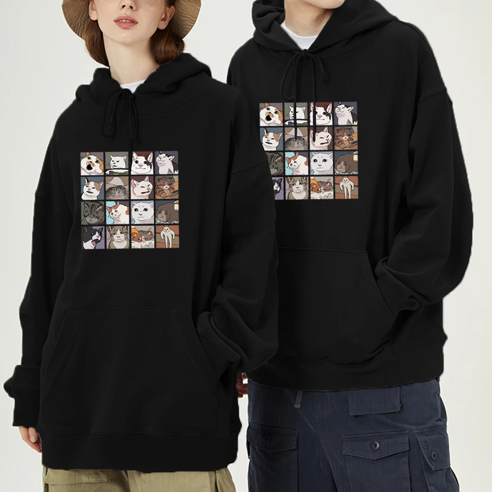 Meme/мужская толстовка с капюшоном и принтом кошек, Новые Зимние флисовые толстовки с капюшоном, с длинными рукавами, уличная одежда с капюшоном и карманом, мужские черные толстовки с капюшоном