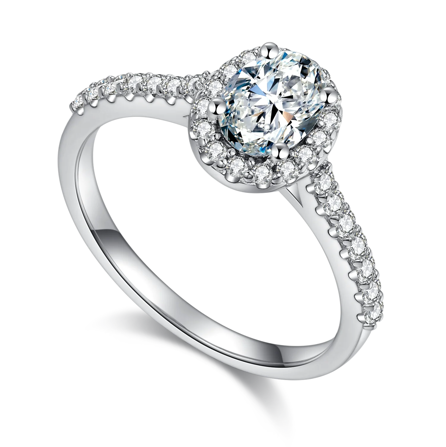 Женское кольцо из серебра с муассанитом, 1 карат, 5 х7 мм