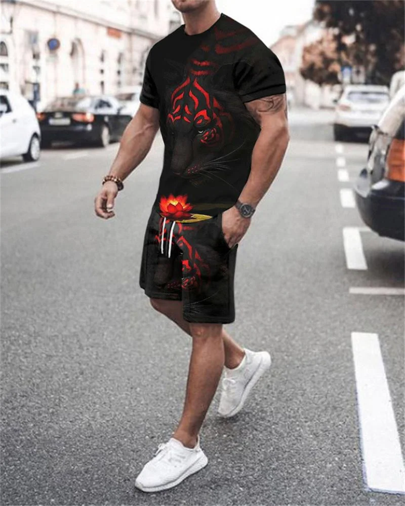 Мужская спортивная одежда с 3D принтом шорты с коротким рукавом костюм в стиле хип-хоп Мужская модная летняя спортивная одежда мужской спортивный костюм