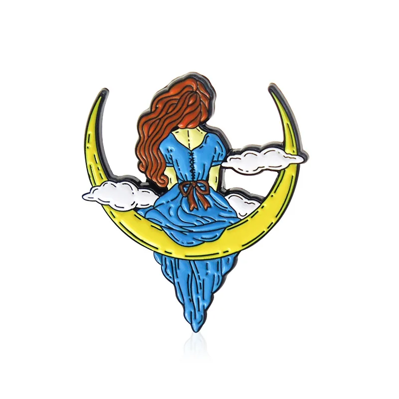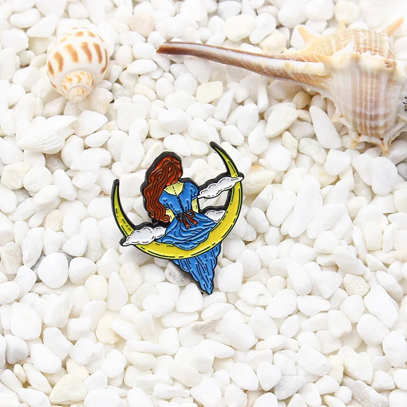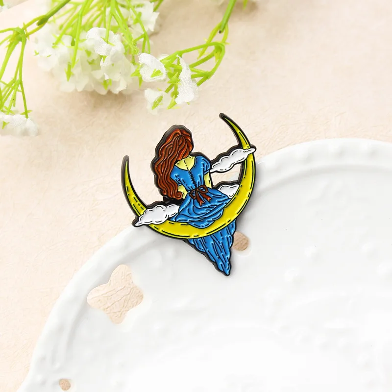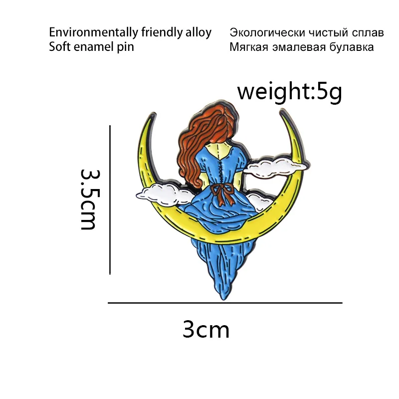 Мультяшная Милая модная женская синяя эмалированная брошь с изображением сзади, луна, облако, сладкий значок из сплава, аксессуары для одежды, Женские Ювелирные изделия, подарок