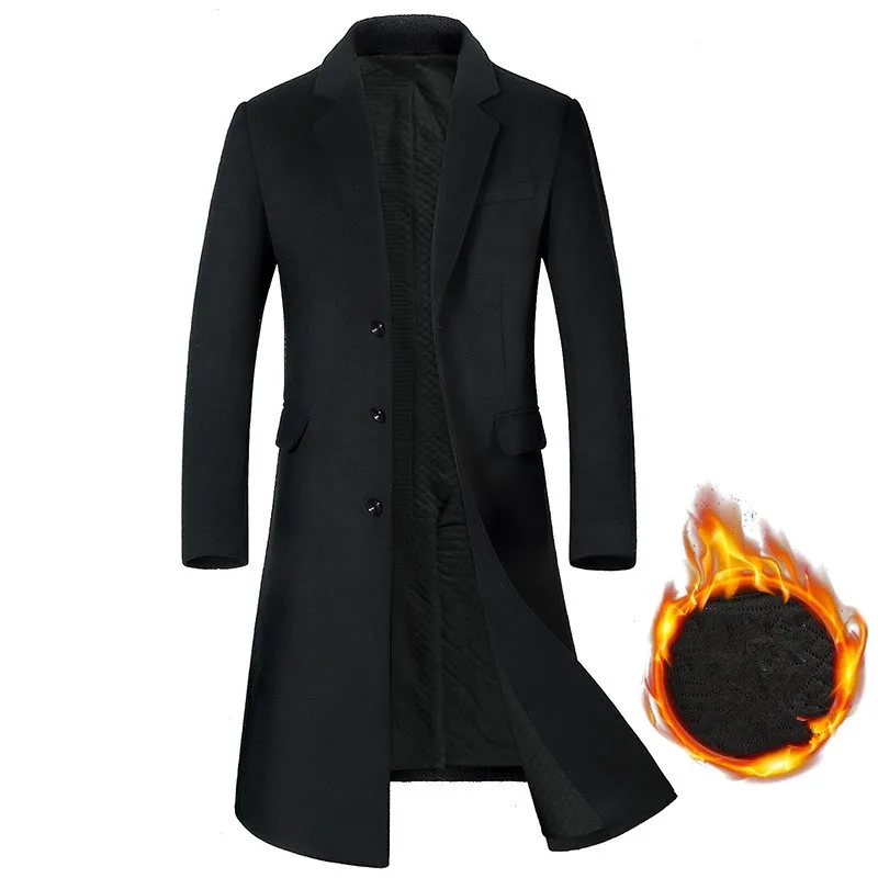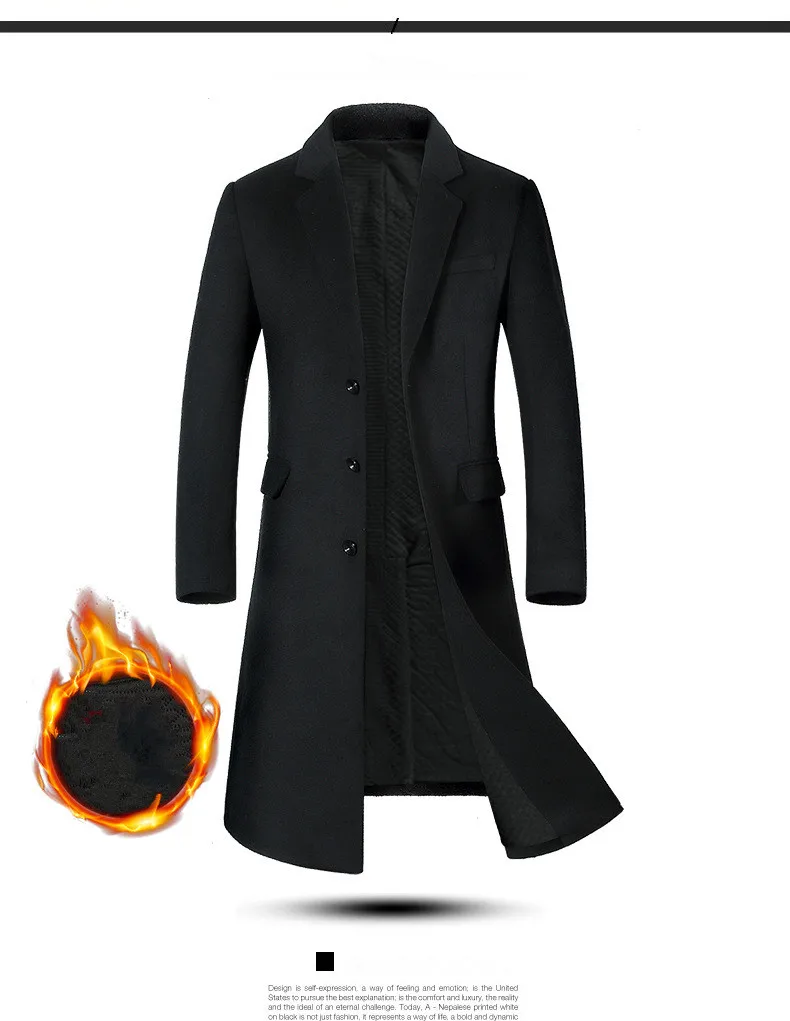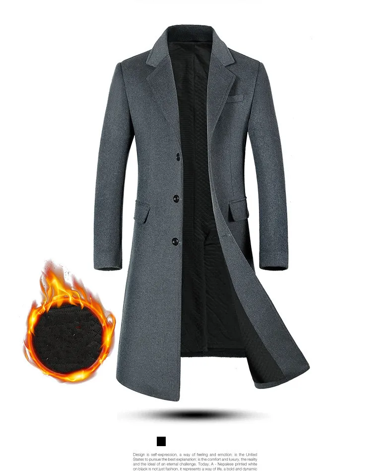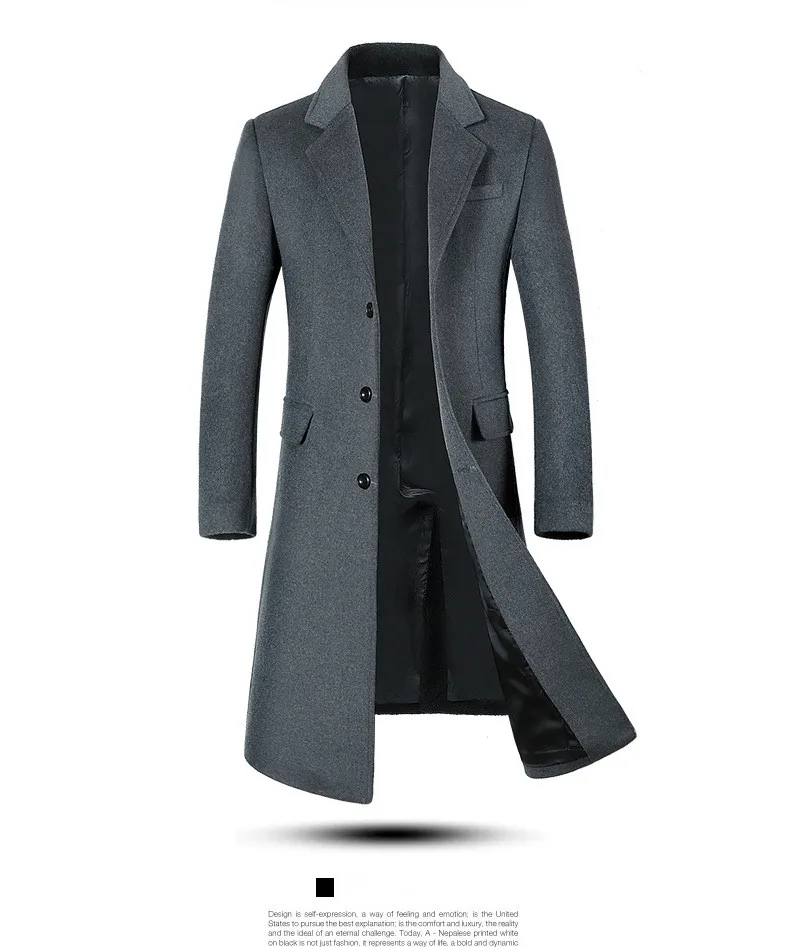 KEGZEIR 2019 зимнее длинное пальто, мужское шерстяное повседневное ...