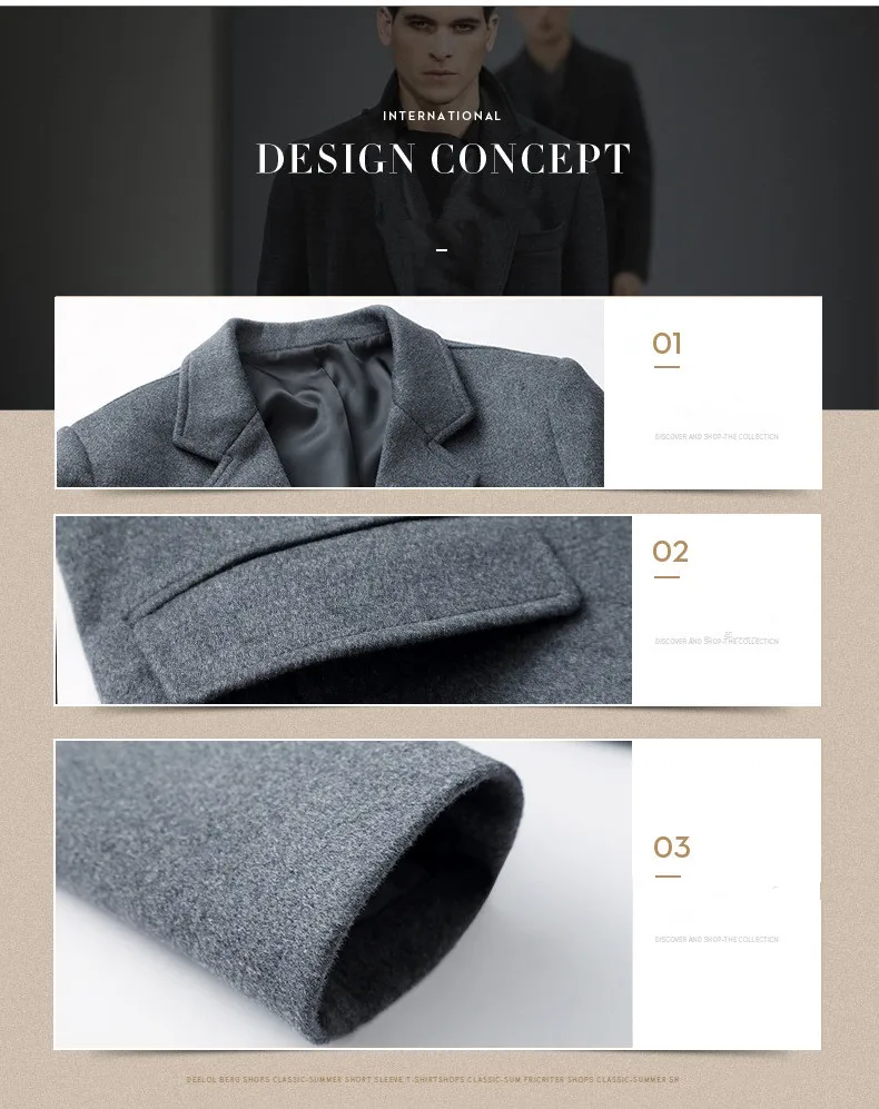 Осенне-зимнее новое шерстяное пальто для мужчин, содержание шерсти ...
